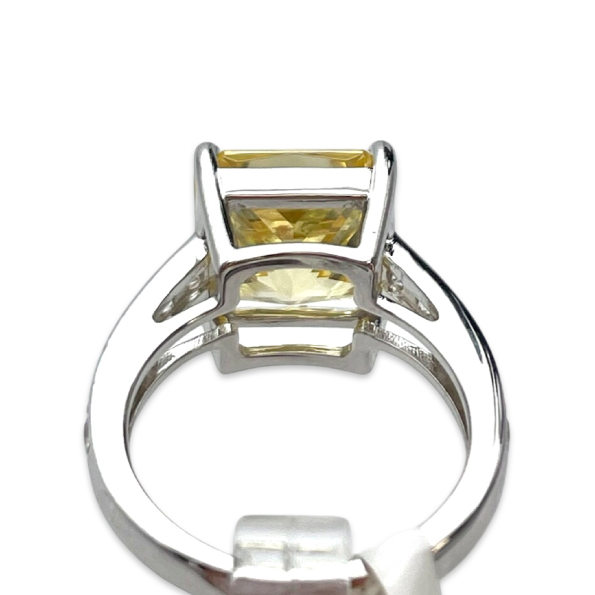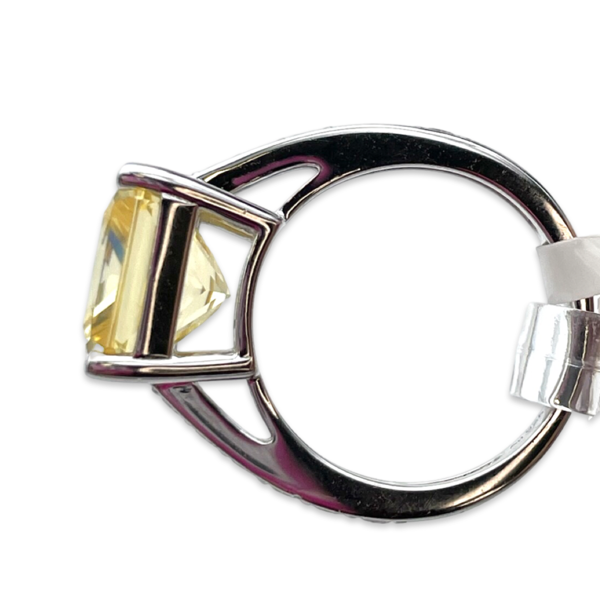 Présentation de la bague Constanze en argent avec un captivant centre en zircon jaune. Cette bague exquise dégage élégance et sophistication, avec sa belle combinaison d'argent sterling et de zircon jaune vibrant.