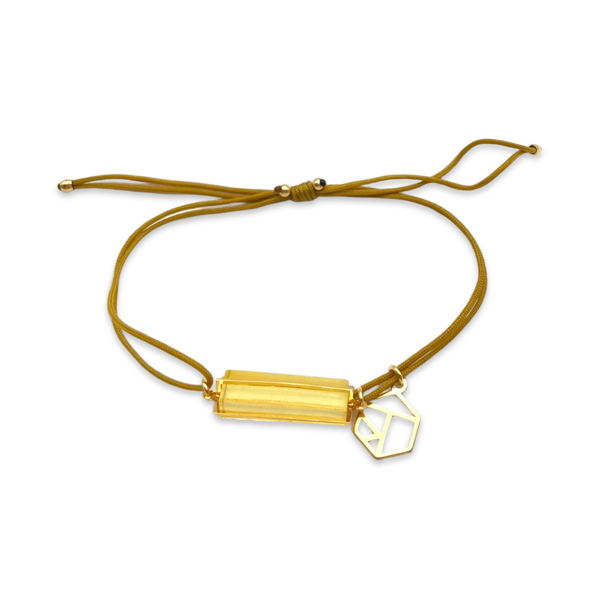 Présentation du Bracelet Corde Beige avec Détails Plaqués Or et Ambre - un accessoire beau et unique, parfait pour ajouter une touche d'élégance naturelle à toute tenue. Ce bracelet présente une corde beige agrémentée de détails plaqués or 24 carats de haute qualité et d'une pierre d'ambre authentique.