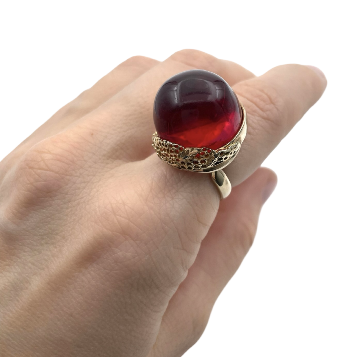 Présentation de notre bague en argent plaqué or avec ambre rouge, une pièce saisissante qui allie couleur vibrante et savoir-faire exquis. Cette bague présente une magnifique pierre d'ambre rouge, connue pour ses teintes uniques et sa beauté naturelle, élégamment sertie dans un argent sterling 925 de haute qualité avec un plaquage or luxueux. Le design de la bague est à la fois moderne et intemporel, ce qui la rend parfaite pour un usage quotidien ou des occasions spéciales. Elle constitue un cadeau idéal pour ceux qui apprécient les bijoux uniques et ajoute une touche d'élégance à toute collection.