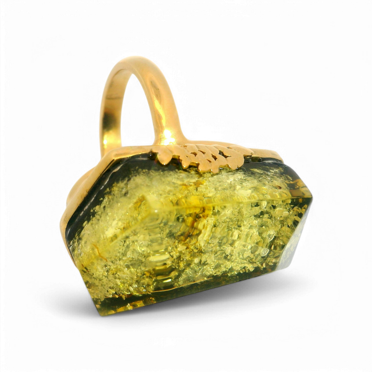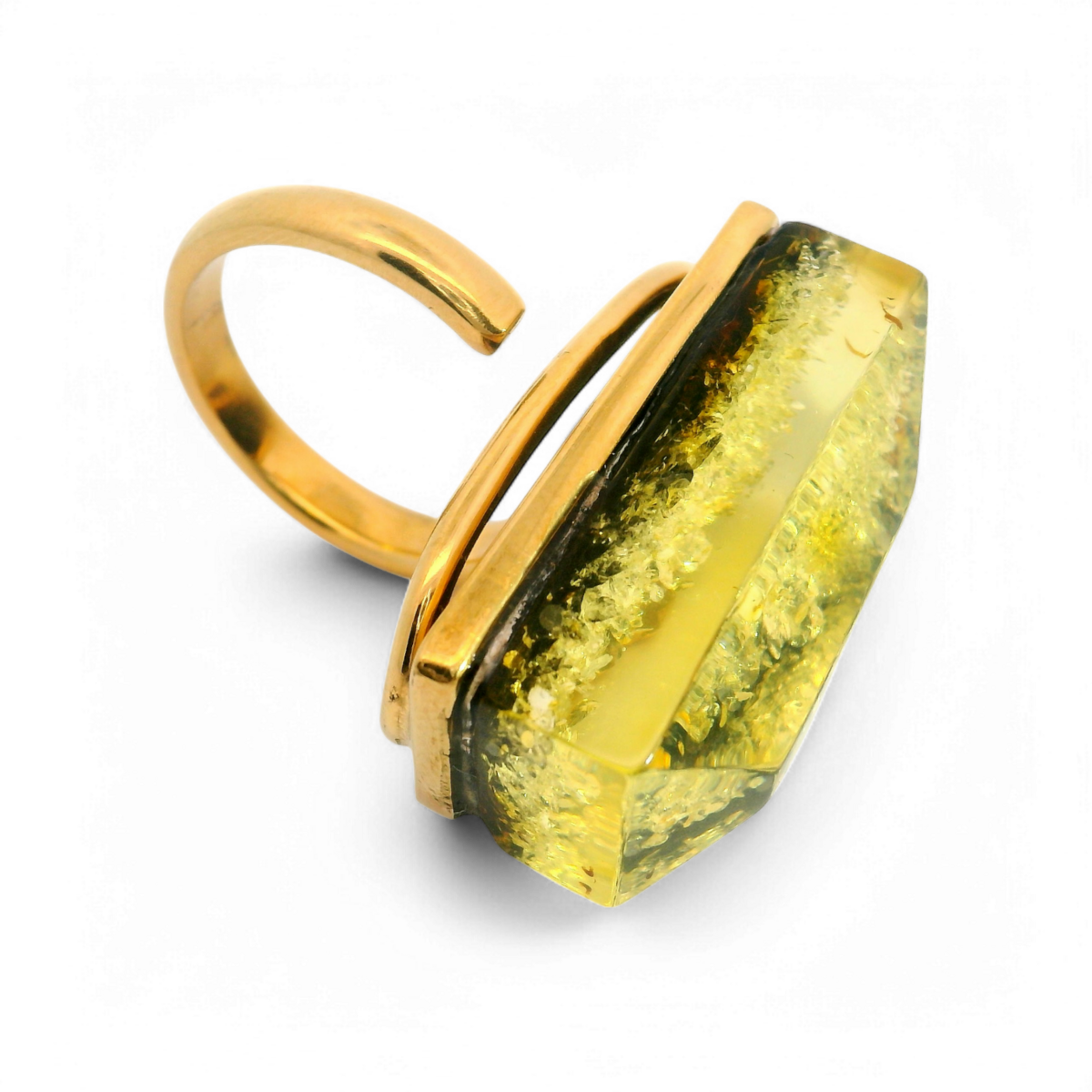 Un mélange raffiné d'élégance et de nature, cette bague en argent sterling 925 plaqué or avec ambre verte est un accessoire intemporel. La pierre d'ambre verte vive offre un charme unique et organique, magnifiquement rehaussé par la finition dorée chaleureuse de la base en argent.
