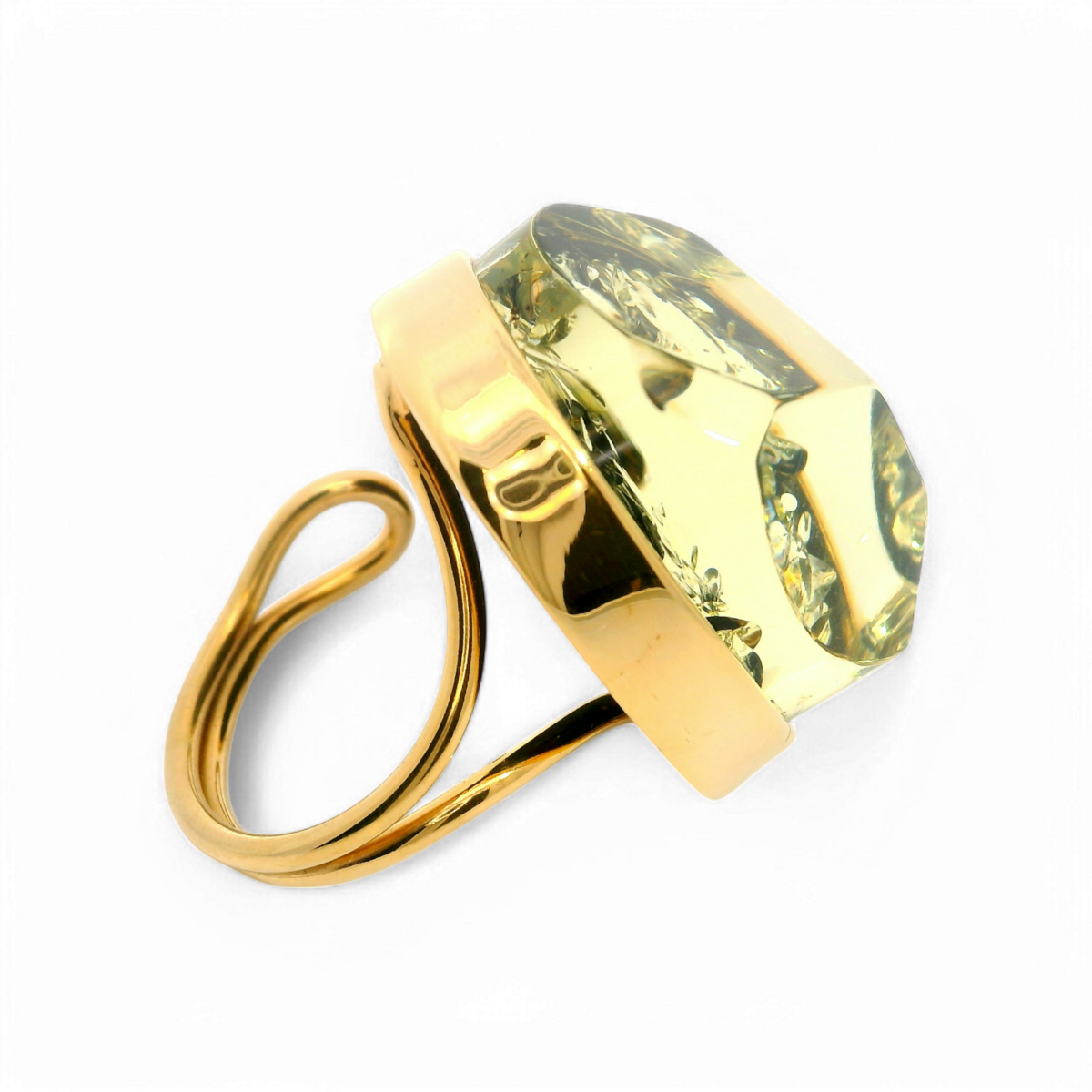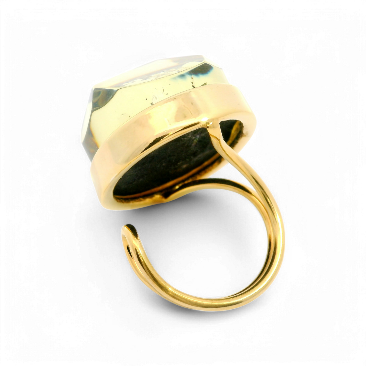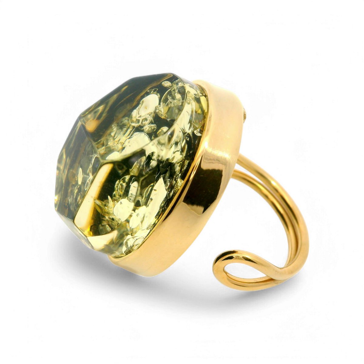 Bague plaquée or avec ambre verte