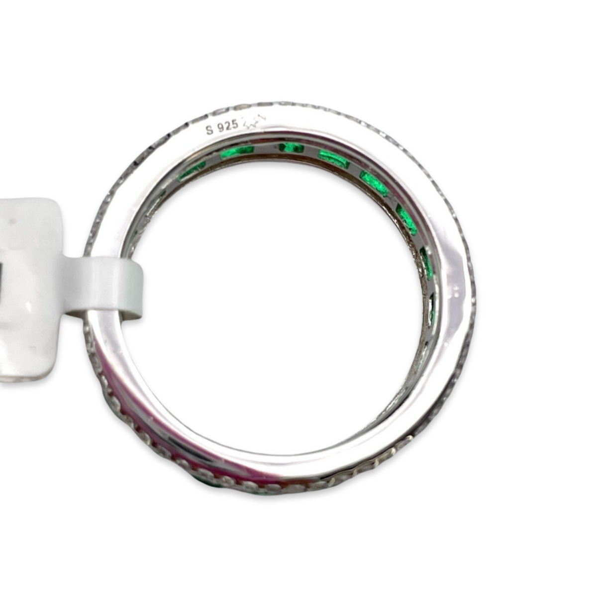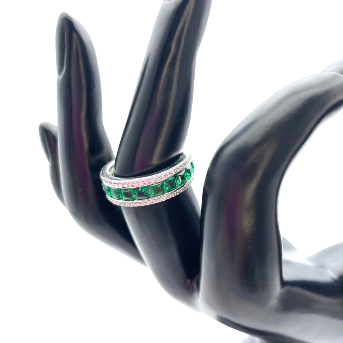 Présentation de la bague anneau en argent imitation diamant, une pièce éblouissante qui combine l'élégance d'un anneau en argent avec l'éclat des zircons blancs et émeraudes. Cette bague est conçue pour ressembler à un anneau serti de diamants, dégageant sophistication et glamour. La bague présente une série de zircons blancs, minutieusement sertis le long de l'anneau, créant un effet scintillant rappelant les diamants véritables. Ces zircons captent magnifiquement la lumière, ajoutant une touche d'éclat à votre doigt. De plus, la bague met en valeur des zircons émeraudes, placés stratégiquement pour créer des accents saisissants et une touche de couleur verte vibrante. Fabriquée en argent 925 de haute qualité, cette bague anneau offre durabilité et esthétique épurée. L'anneau en argent fournit un fond classique et polyvalent pour les zircons, assurant qu'ils se démarquent et créent un affichage visuel captivant. Parfaite pour les occasions formelles comme pour un port quotidien, cette bague anneau en argent imitation diamant avec zircons blancs et émeraudes est un ajout fantastique à toute collection de bijoux. Que vous vous fassiez plaisir ou cherchiez un cadeau, cette bague ne manquera pas d'impressionner par son élégance, sa sophistication et ses brillants accents de zircon.