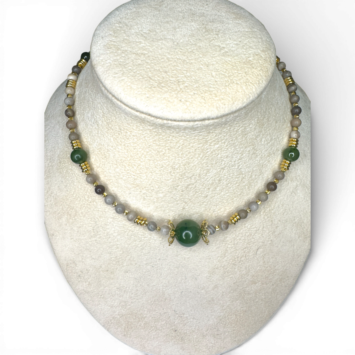 Collier avec jade vert et silex rayé