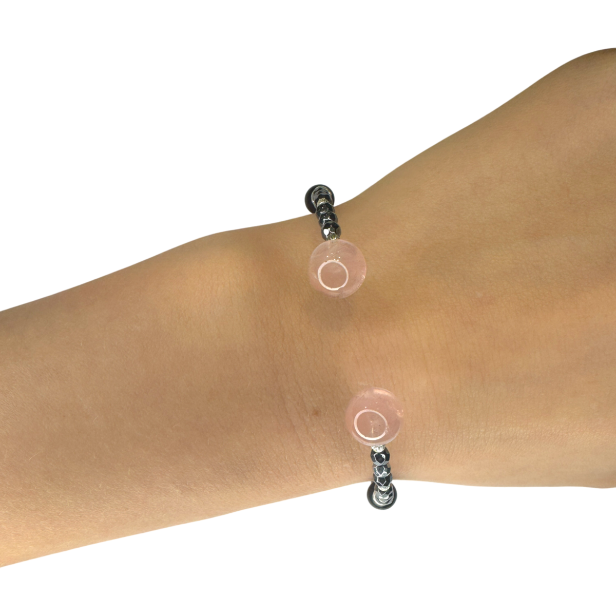 Un bracelet raffiné combinant le quartz rose doux, l'ambre cerise riche et l'hématite élégante, fini avec des détails argentés élégants. Le contraste entre la chaleur douce et la brillance subtile crée une déclaration équilibrée et moderne. Ajustable pour un ajustement parfait, expressif et d'une sophistication sans effort — conçu pour sublimer le style quotidien avec une élégance naturelle.