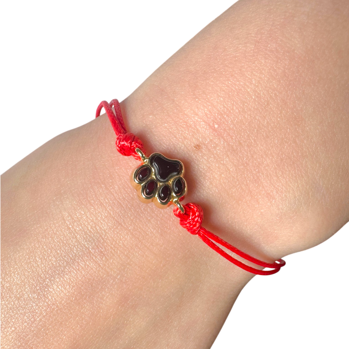 “Paw” Bracelet with Red Cord, Gold-Plated Silver Details & Natural Amber (Adjustable)