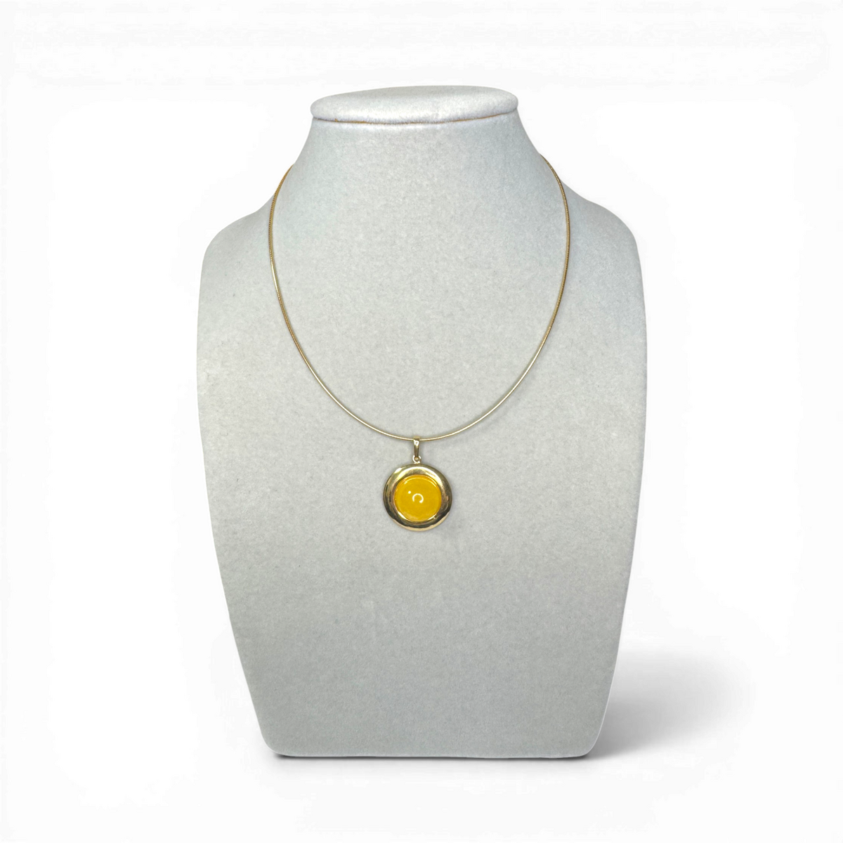 Gold-Plated 925 Silver Necklace with Yellow Amber PendantCarry a touch of sunshine wherever you go. This luminous yellow amber pendant radiates warmth and positivity, instantly brightening your look. Pair it with soft tones or summer outfits for an effortlessly fresh and glowing style.