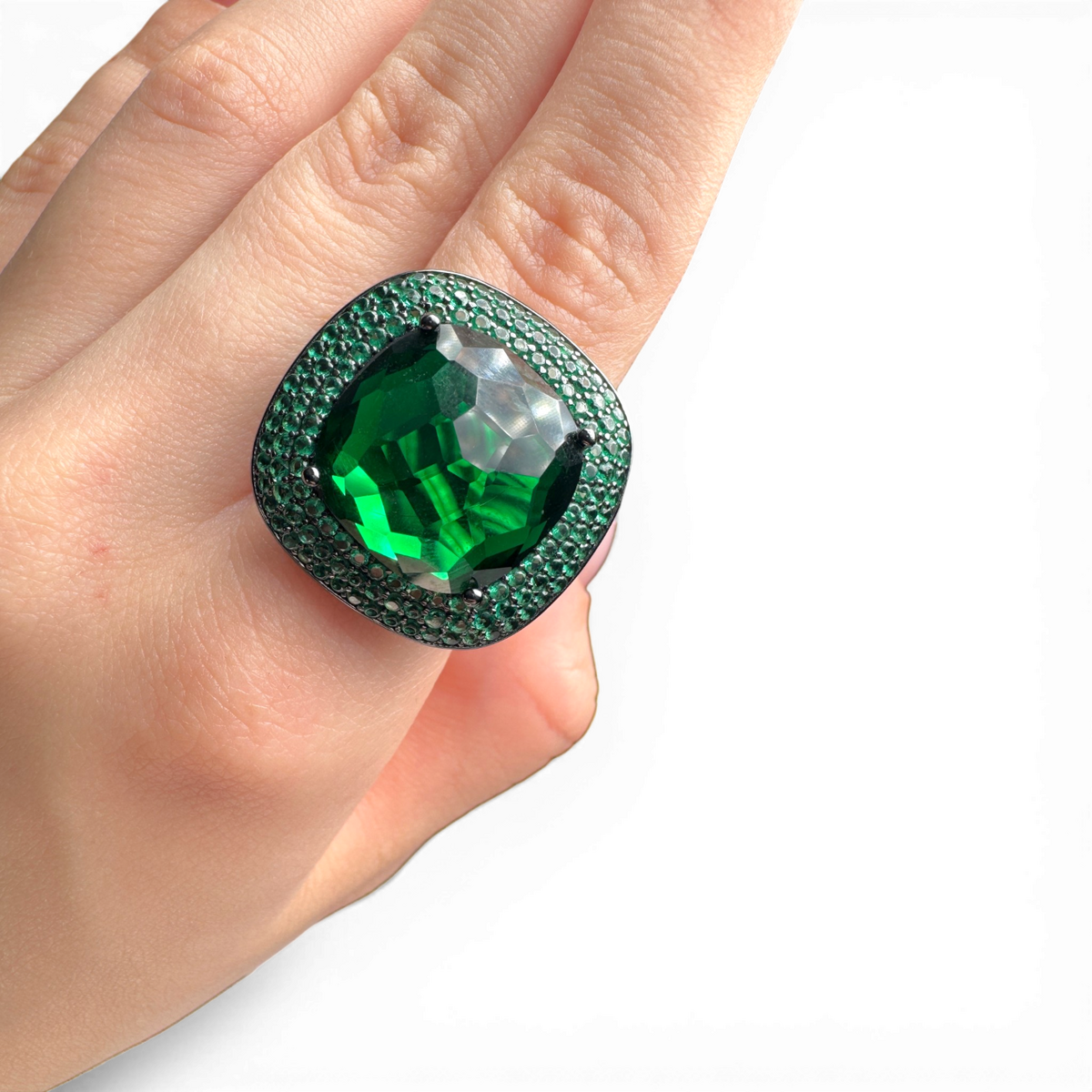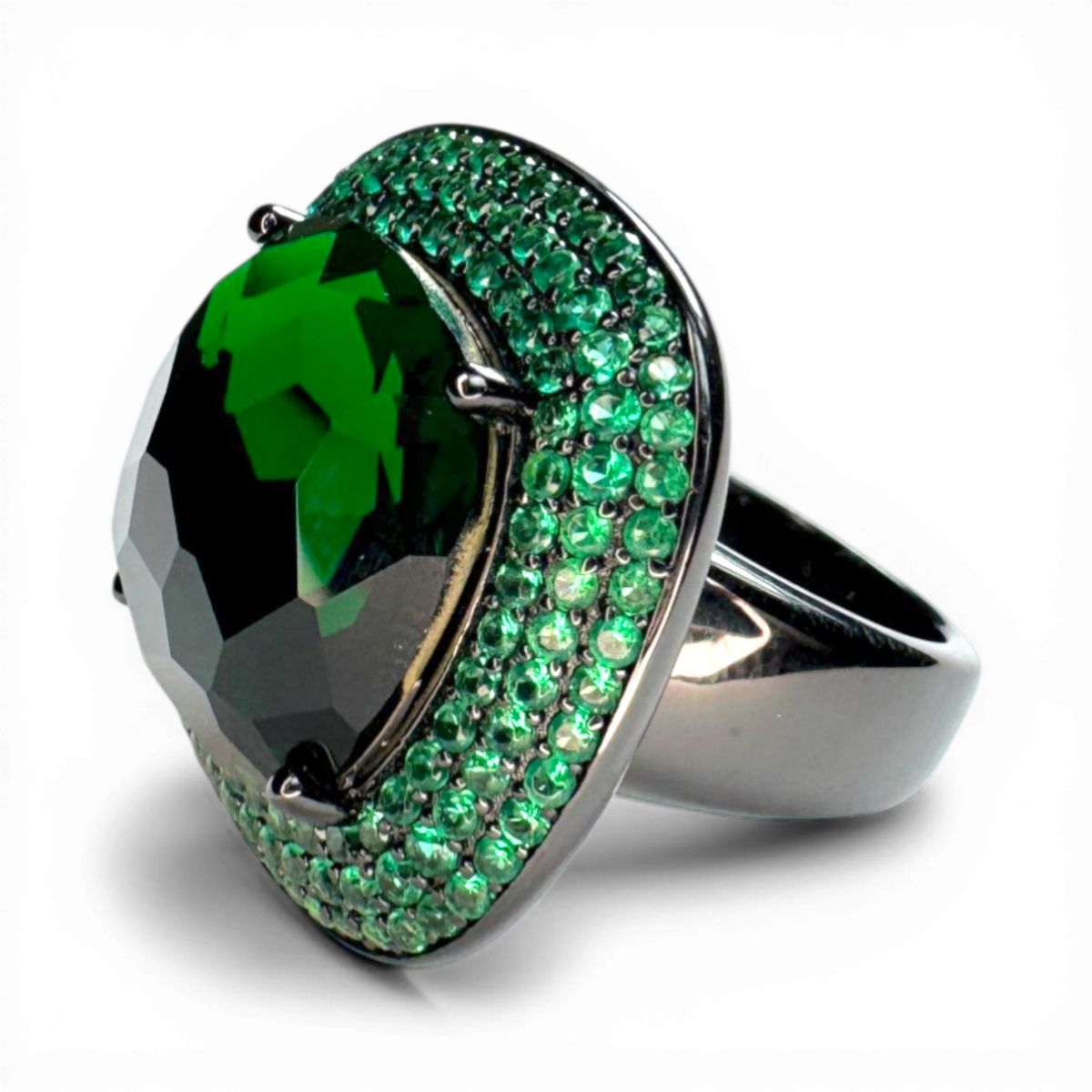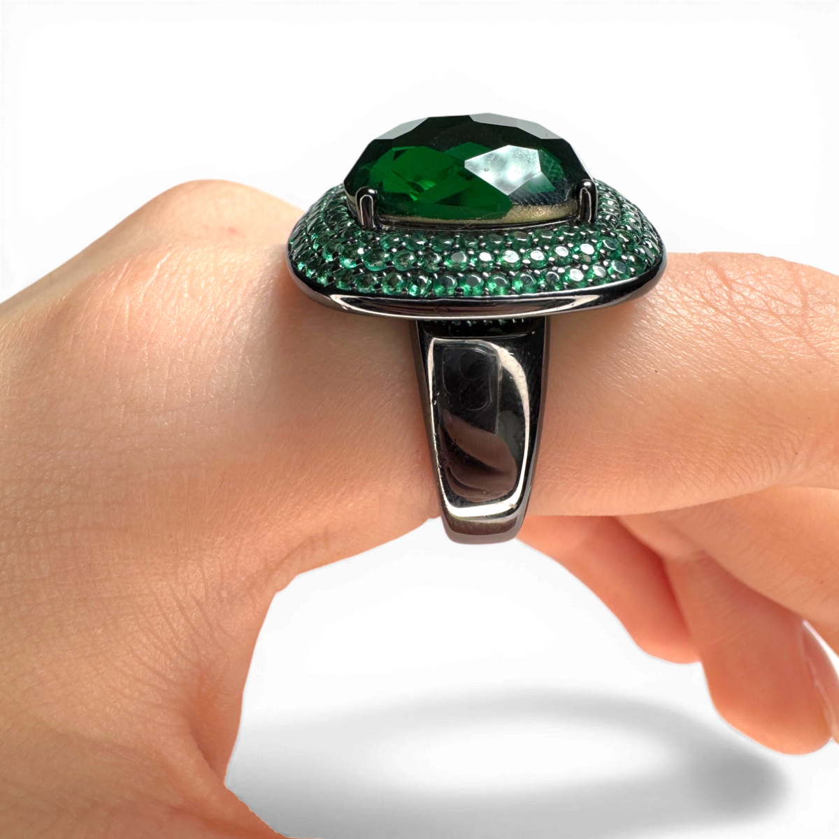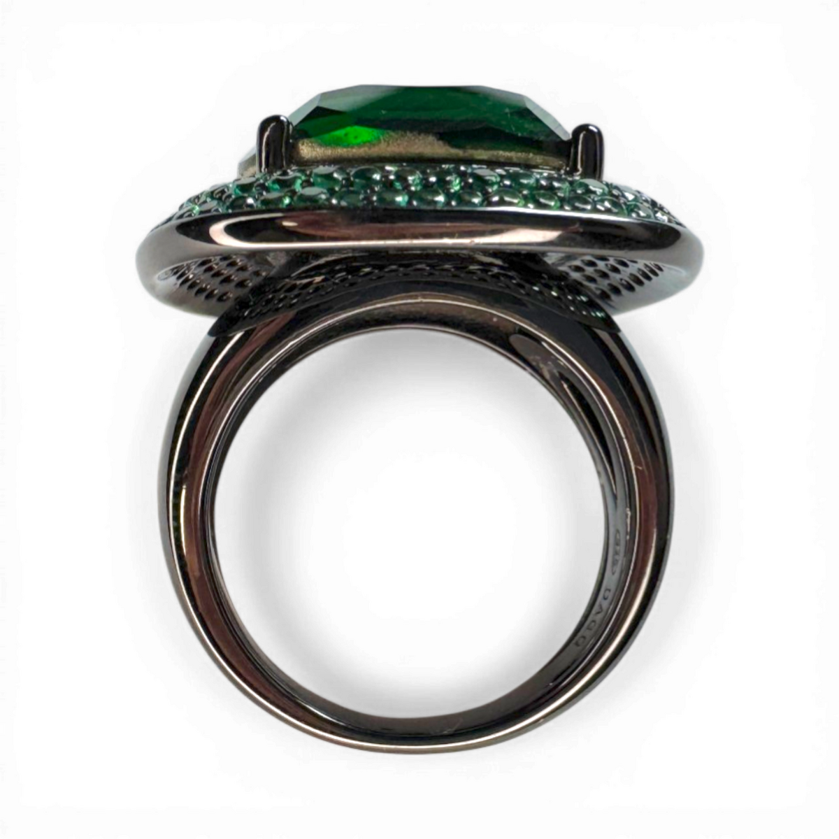 Antique ring green central glass and nano pavé