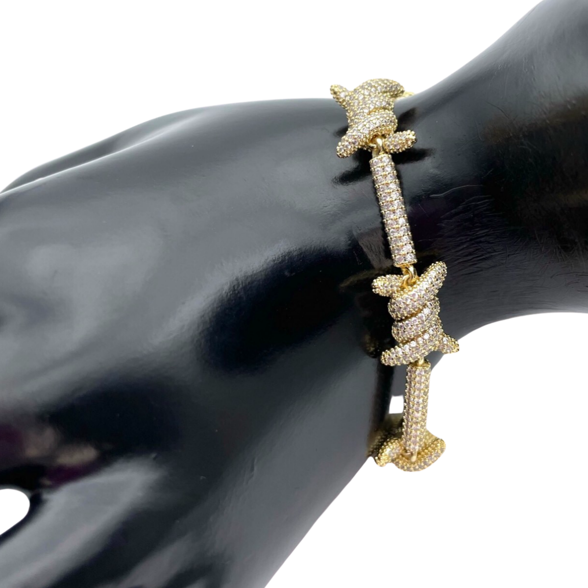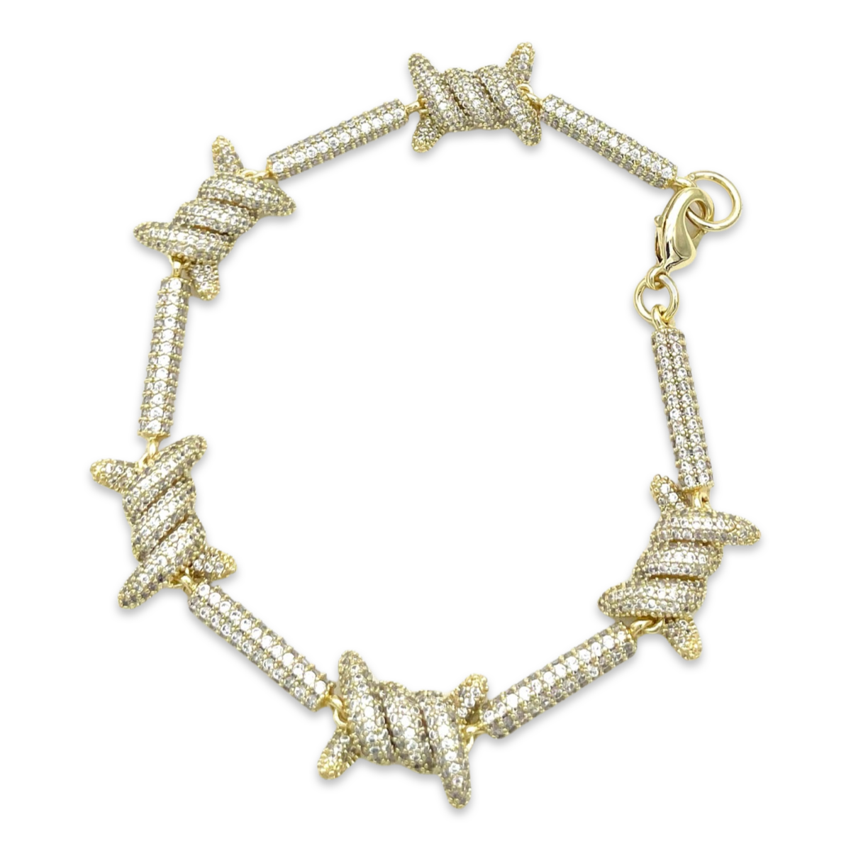 This gilded barbed wire bracelet is a unique and stylish accessory, available for purchase on the our website. The bracelet features a barbed wire design that has been plated in a beautiful and eye-catching gold color. The barbed wire design gives the bracelet an edgy, industrial feel that will make it stand out from other jewelry in your collection. Its lightweight and comfortable design makes it ideal for everyday wear. Whether you're looking for a statement piece to complete an outfit or just something to add a touch of style to your everyday look, this barbed wire bracelet in gold is the perfect choice.