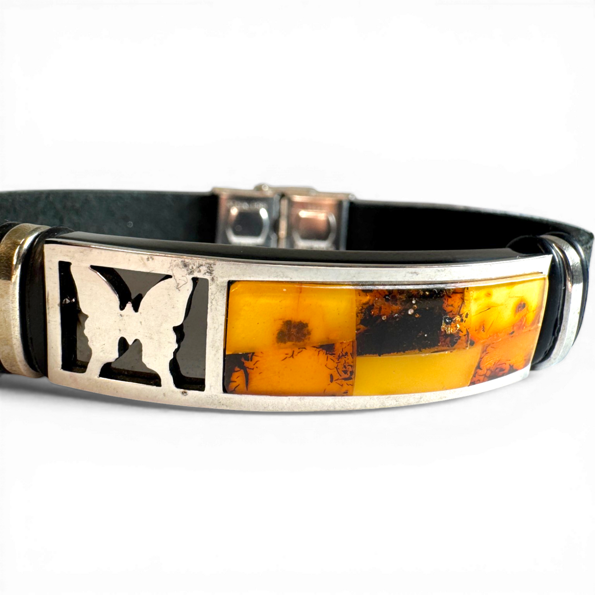 Bracelet with Amber (Stainless Steel & Leather)