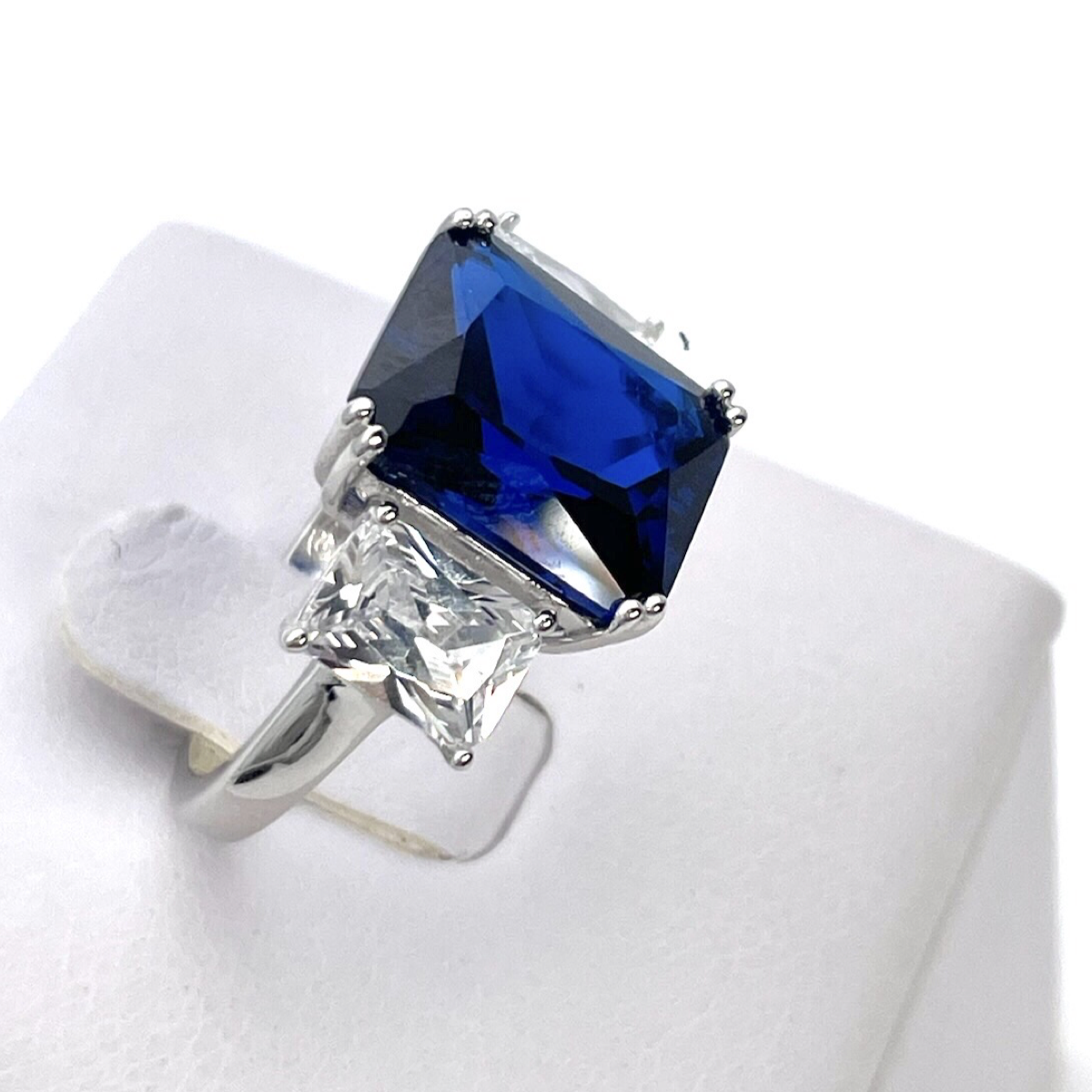 Introducing the Cushion Cut Silver Ring with a captivating blue zircon-a stunning piece of jewelry that combines timeless elegance with a pop of color.