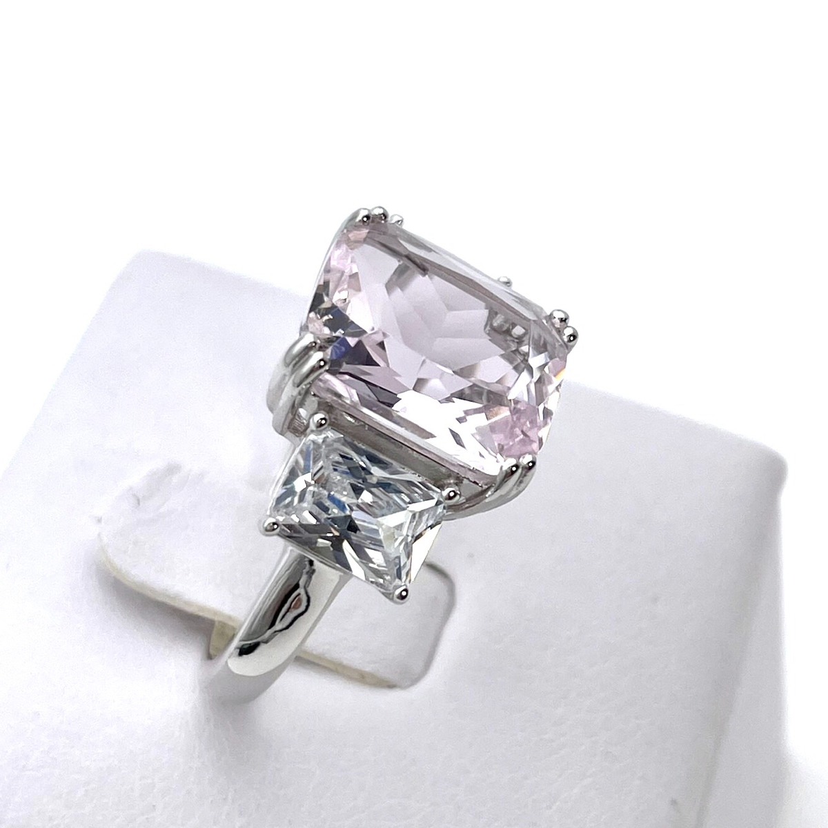 Elevate your style with our Cushion Cut Silver Ring featuring a gentle light pink crystal. This meticulously crafted ring seamlessly blends classic elegance with a modern touch of soft, refined beauty.