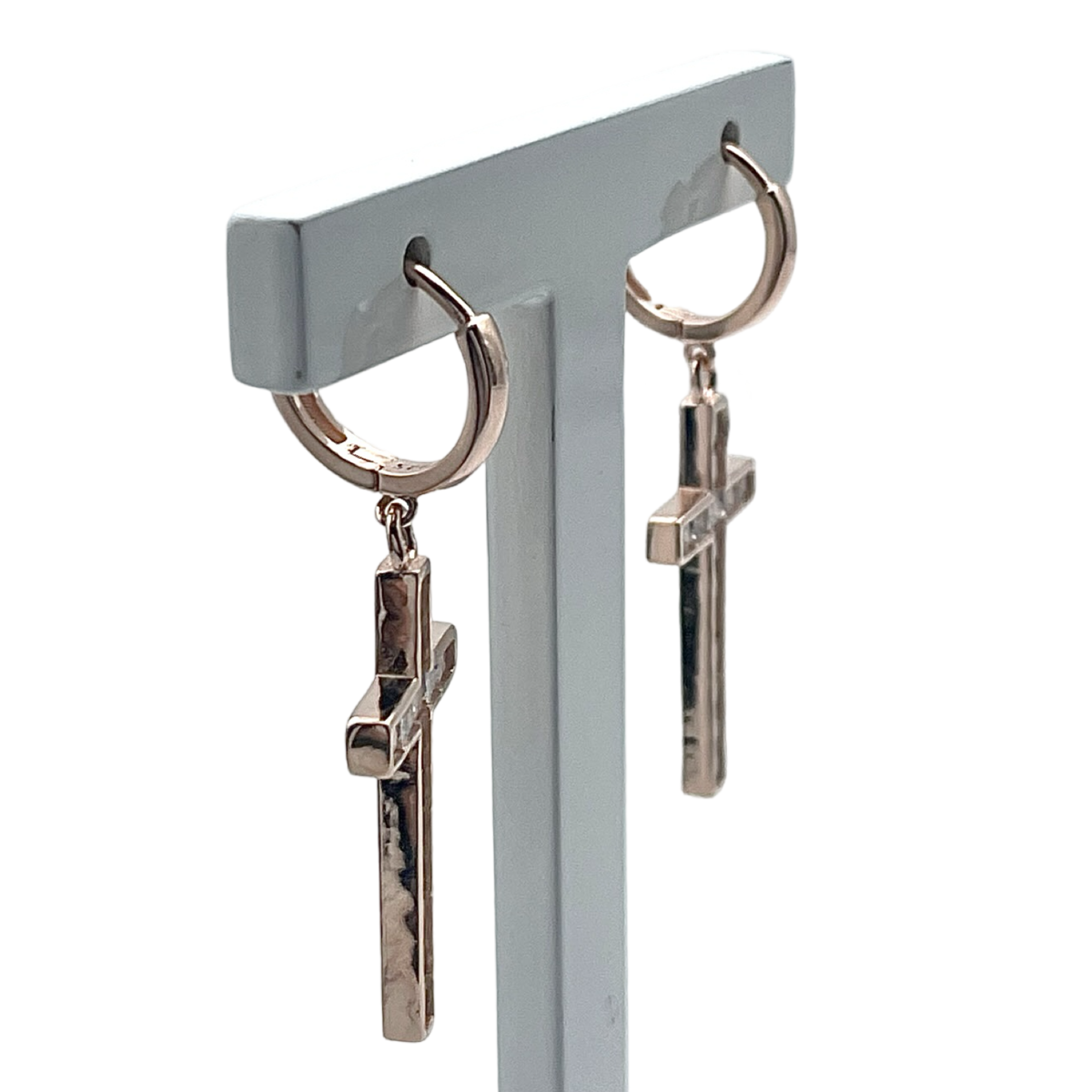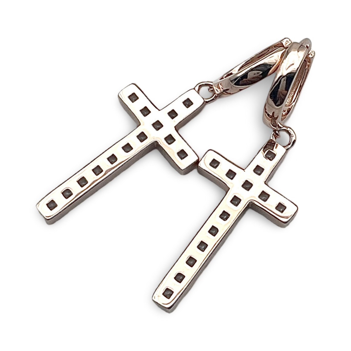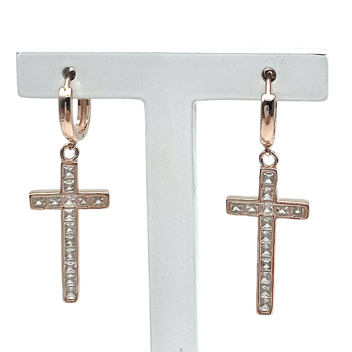 The Pink Gold-Plated 925 Silver Cross Earrings with White Zircons are a beautiful and modern accessory, blending classic design with a romantic touch. Crafted from high-quality sterling silver and plated with soft pink gold, these cross-shaped earrings are adorned with sparkling white zircons, adding a luxurious and elegant flair. Perfect for both daily wear and special events, the unique pink gold finish and brilliant zircons offer a fresh, sophisticated look. These earrings are ideal for those who love jewelry that combines tradition with contemporary style.