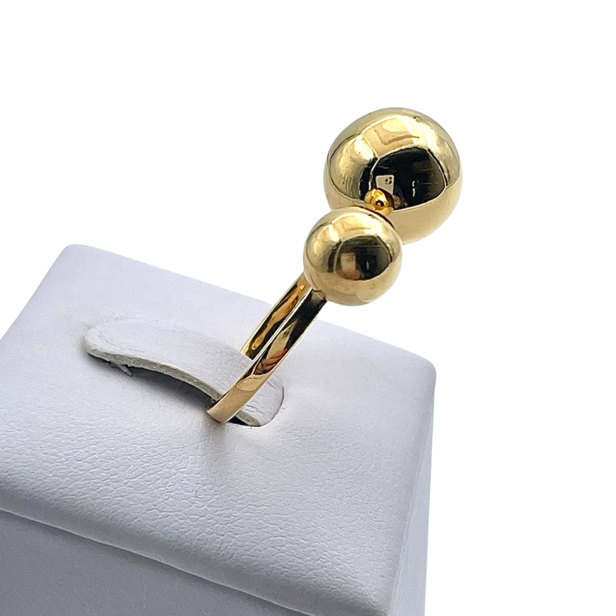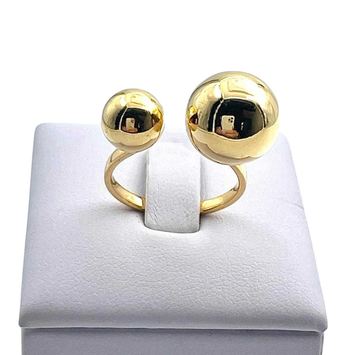 The Premium Quality Gold-Plated Silver Balls Ring is a chic and contemporary piece of jewelry, crafted from high-grade sterling silver with a luxurious gold plating. Featuring a minimalist design with delicate ball accents, this ring adds a modern and stylish touch to any outfit. Its sleek and polished finish ensures versatility, making it perfect for both casual and formal wear. The premium craftsmanship guarantees durability and long-lasting shine, making this ring a standout addition to any jewelry collection for those who appreciate elegant simplicity with a modern twist.