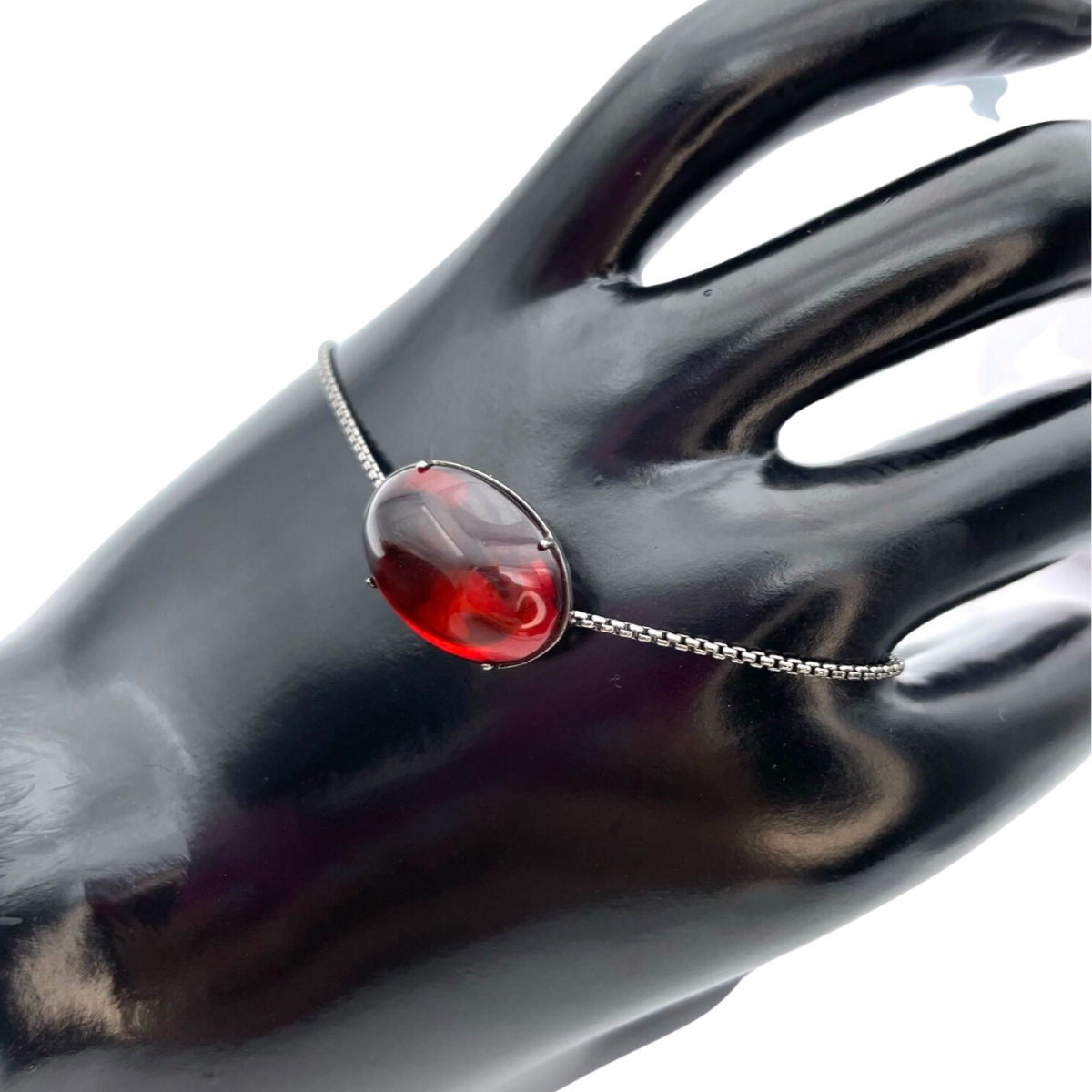 Make a bold statement with this beautiful silver bracelet featuring red amber stone. The red amber stones are hand-selected for their unique color and characteristics, making each bracelet one-of-a-kind. The silver setting 925 enhances the rich red color of the amber and adds a touch of sophistication to the design. The bracelet is adjustable, making it a versatile piece that can be worn by women of all wrist sizes. Whether dressed up or dressed down, this silver bracelet with red amber is sure to turn heads and make a statement wherever you go.