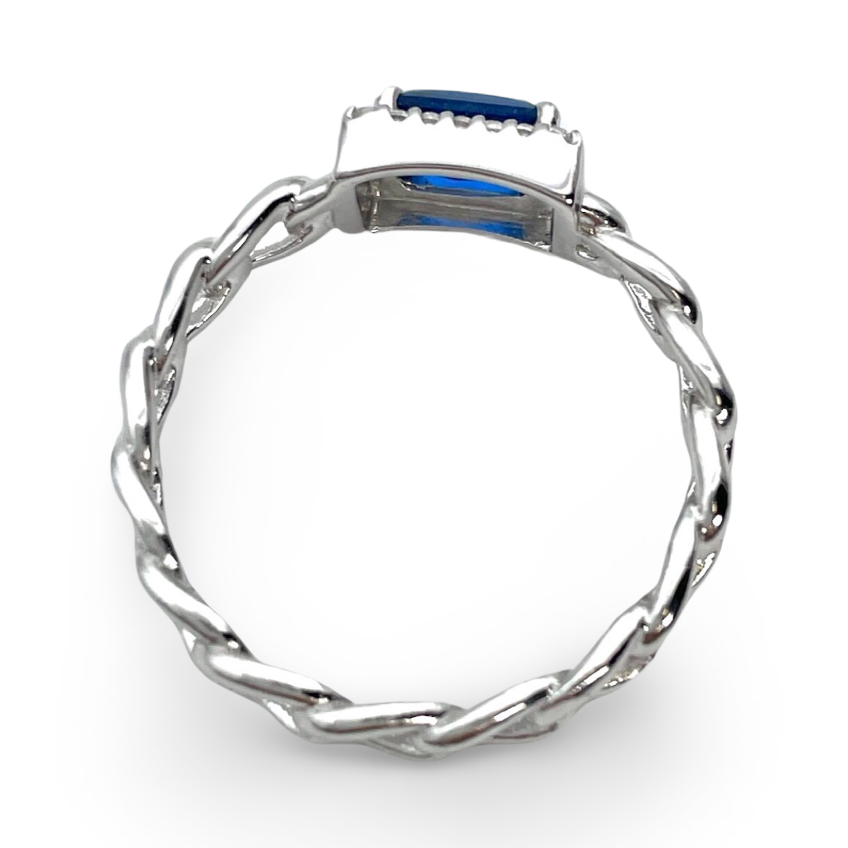 Silver Braided ring with blue zircon