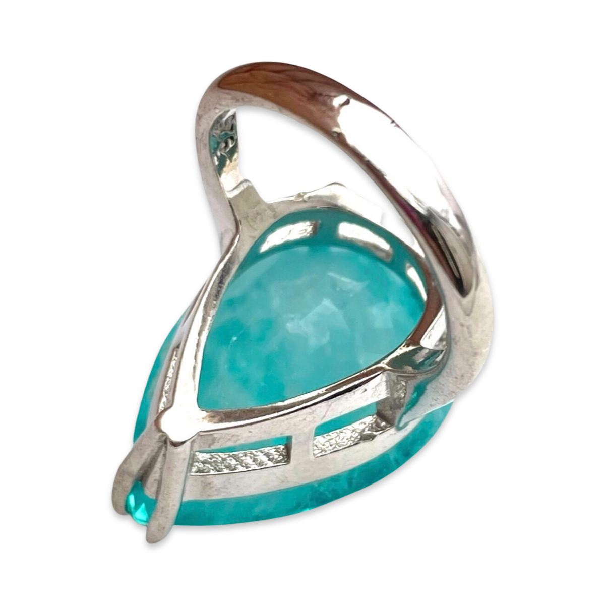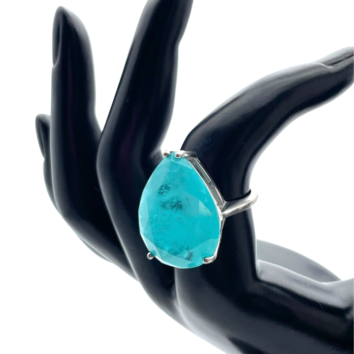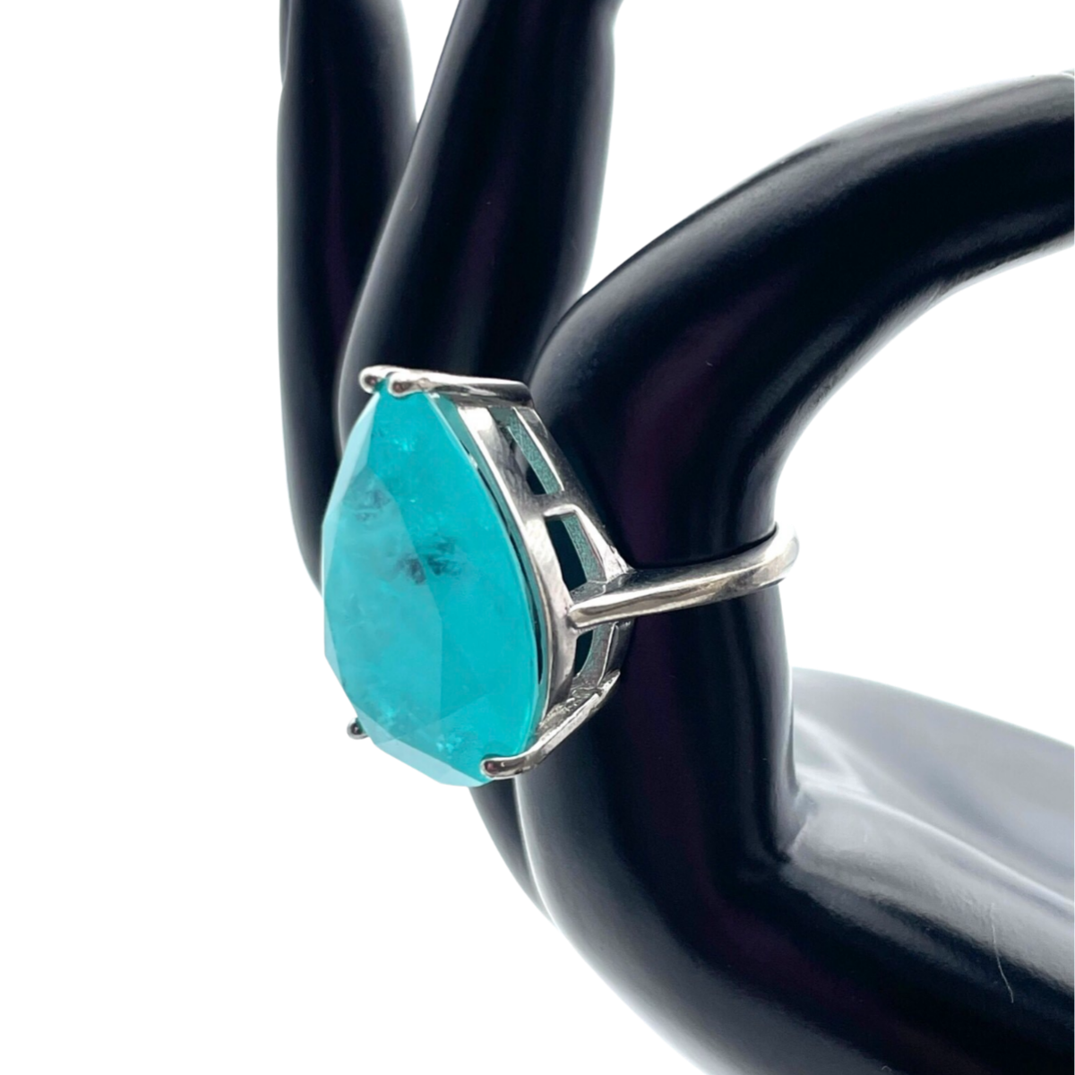 This stunning silver ring features a beautiful blue faceted Paraiba stone as its centerpiece. The stone is set in a simple yet elegant design, allowing the vibrant color of the stone to take center stage. The band is made of high-quality silver 925. This piece is perfect for those who love unique and eye-catching jewelry, and is sure to add a pop of color to any outfit. Whether you're dressing up for a special occasion or looking to add a touch of glamour to your everyday look, this ring is a perfect choice.