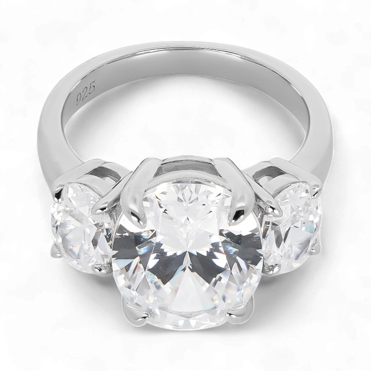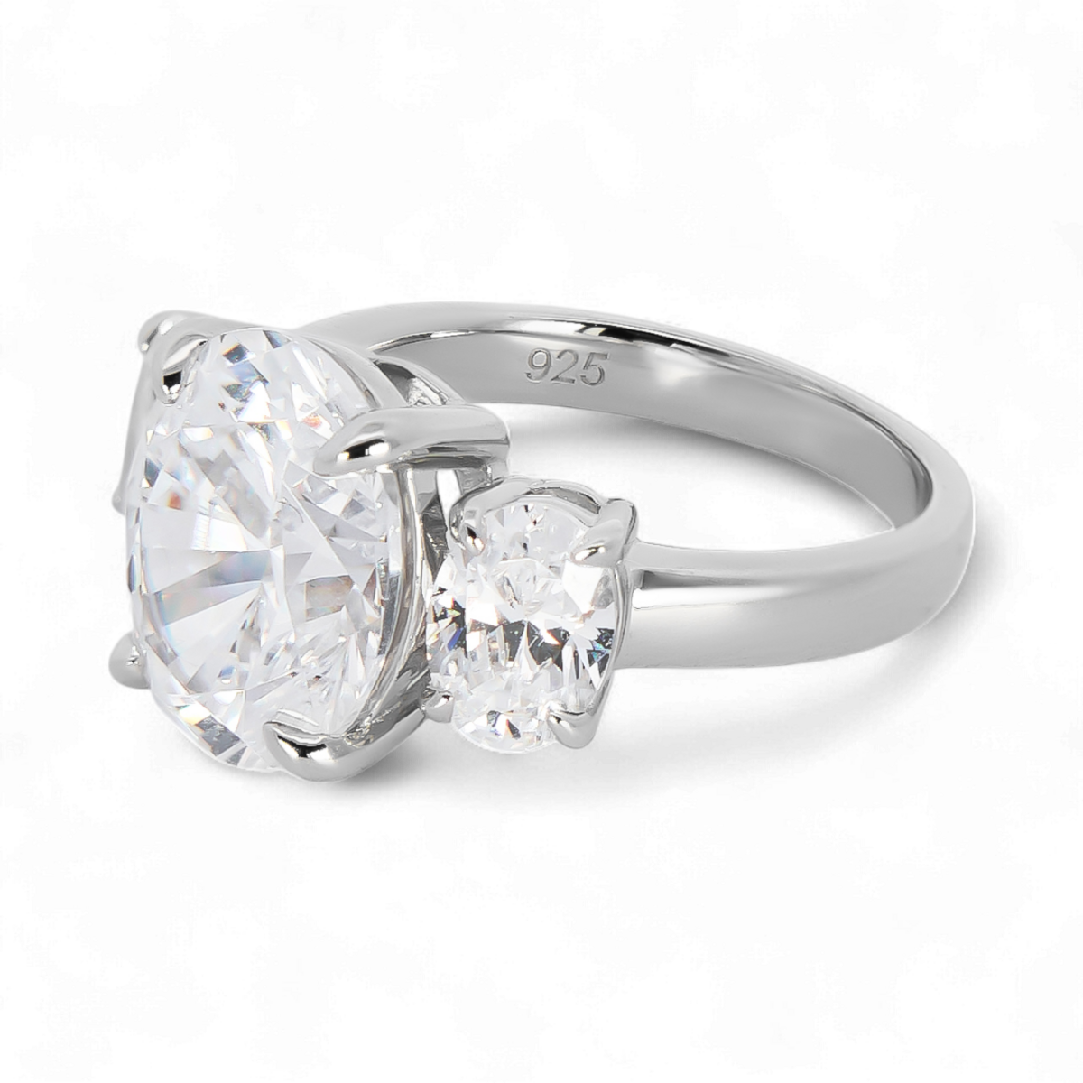 Celebrate your love with timeless elegance. This Three-Stone Engagement Ring is crafted from Sterling Silver 925 and adorned with three sparkling white zircons, symbolizing your past, present, and future together.