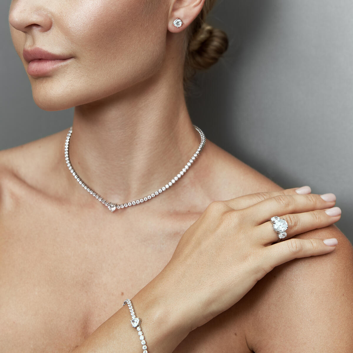 The brilliant-cut stones are set in a sleek silver band, offering a classic and sophisticated look. Perfect as an engagement ring or a meaningful gift, this piece combines enduring beauty with heartfelt symbolism.