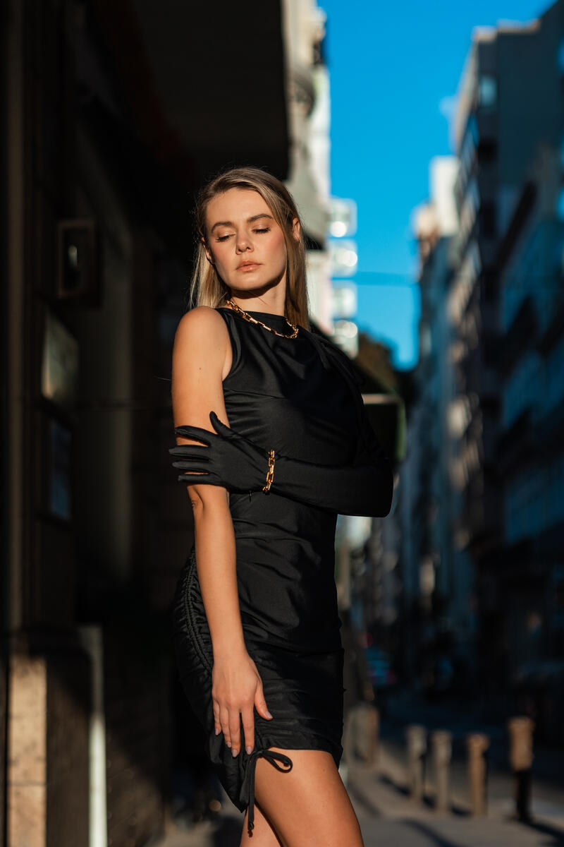 The black colour gives additional elegance effect. Pair it with your favorite sandals or sneakers and statement accessories for a complete look. This dress is a must-have for any woman who wants to look stylish and feel comfortable at the same time.The Drawstring Dress is a simple yet elegant dress that can be worn at any event.