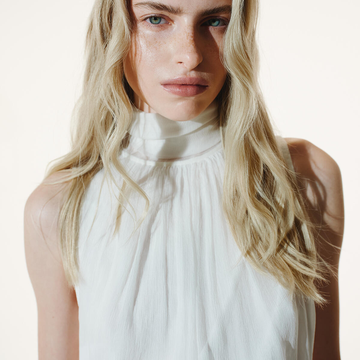 Чиста як перший намір, ця блузка говорить тихими тонами, які все ж привертають кожен погляд. Виготовлена з натурального шовку, вона легка на дотик і плавна в русі, обгортаючи тіло з ніжною легкістю.
