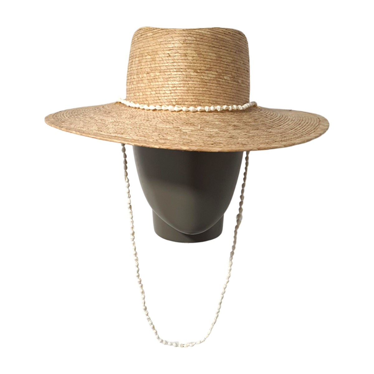 Кожен капелюх оздоблений ручною обробкою з мушельної дротини, що додає унікального, ремісничого шарму. Через органічну природу пальмової соломи та ручний процес виготовлення жоден капелюх не є абсолютно однаковим — кожен є унікальним літнім атрибутом.