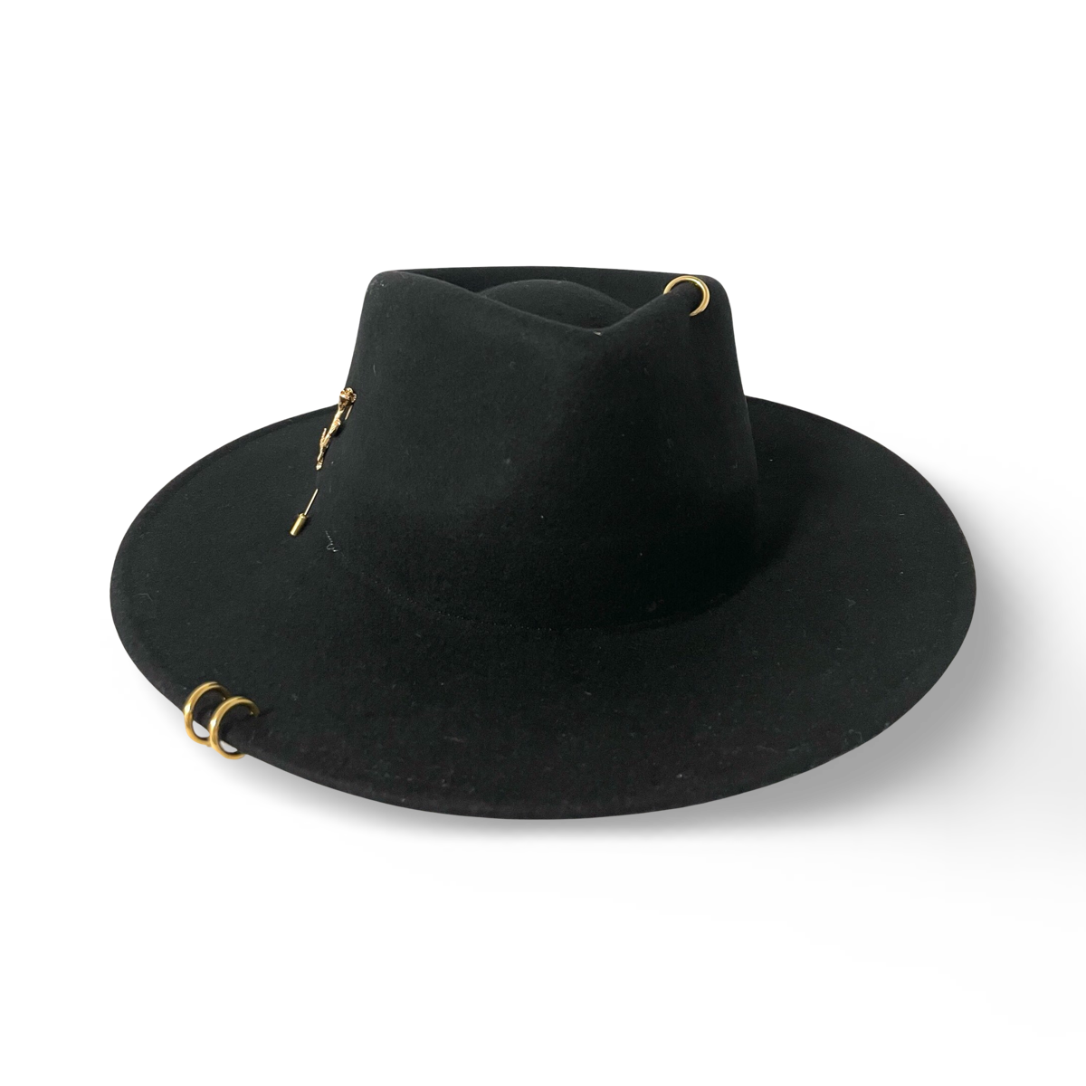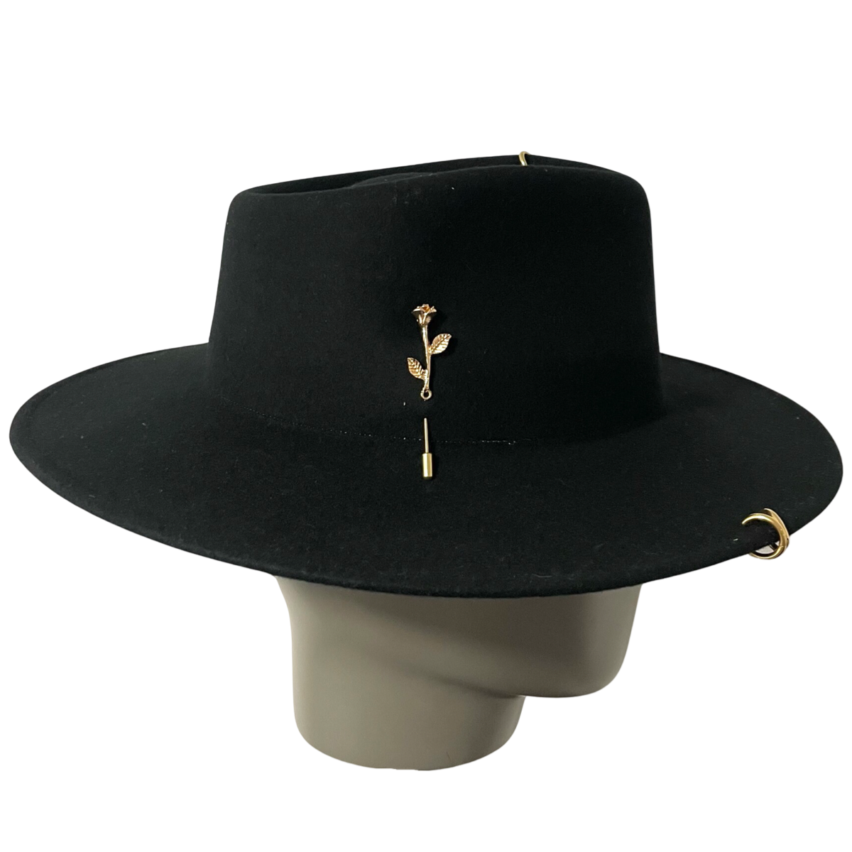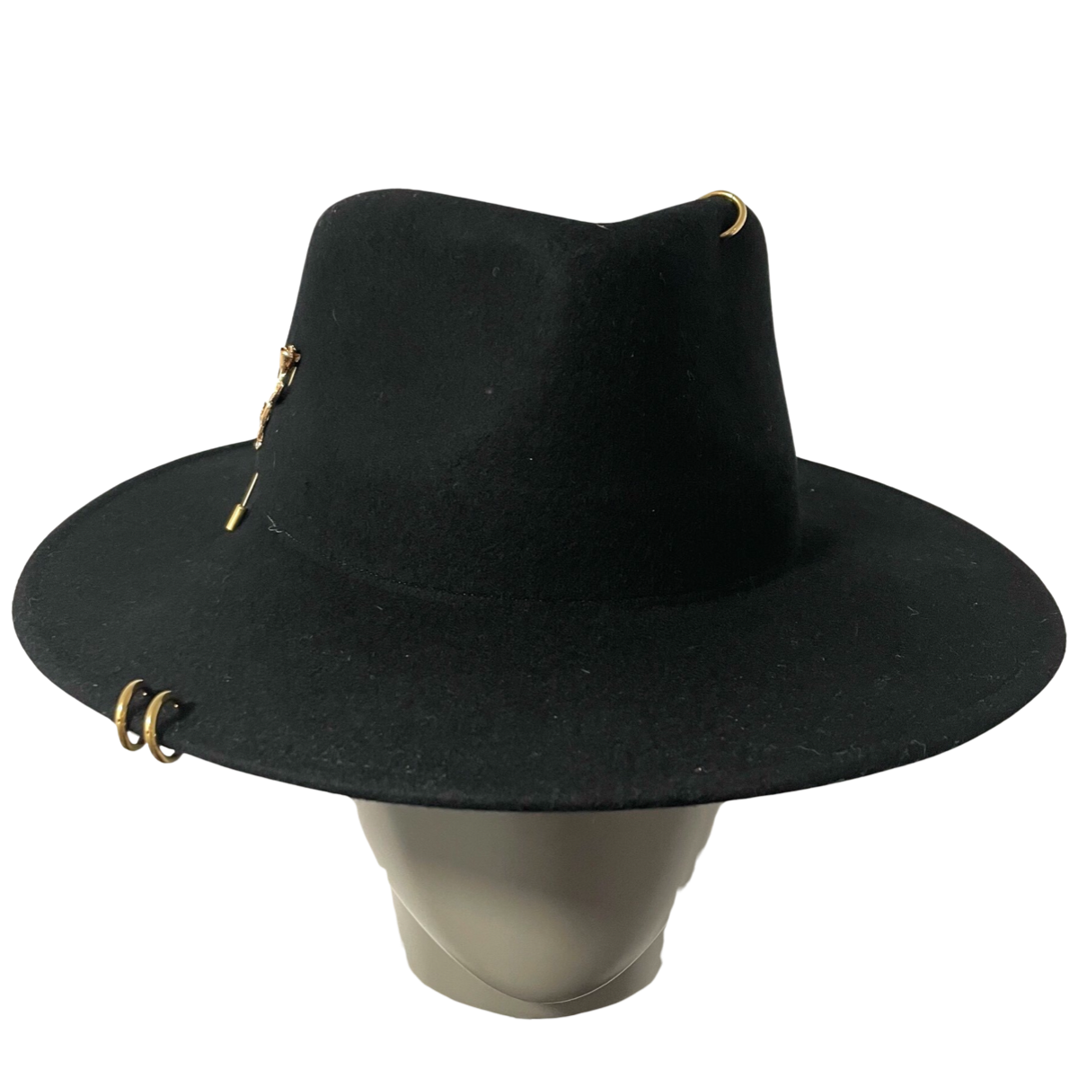 Introducing our classic Fedora Hat, a stylish and eco-friendly accessory made from 100% ecological wool. This Fedora Hat features a 12 cm dome, an 8 cm brim, and is adorned with elegant golden piercings and a charming floral brooch. Key Features: Material: Crafted from 100% ecological wool, this hat is not only fashionable but also environmentally responsible, reflecting your commitment to sustainability. Dome Size: The 12 cm dome provides a comfortable and timeless fit, adding a touch of sophistication to your ensemble. Brim Size: With an 8 cm brim, this Fedora Hat offers the perfect balance between sun protection and a fashionable look. Golden Piercings: The hat is accentuated with eye-catching golden piercings, which add a touch of glamour and uniqueness to your outfit. Floral Brooch: Completing the look, a delightful floral brooch adorns the hat, bringing a touch of charm and femininity to your style. This Fedora Hat is a versatile and elegant accessory suitable for a variety of occasions, from formal events to casual outings. Its combination of high-quality ecological wool, dome and brim size, golden piercings, and a floral brooch makes it a chic and distinctive choice. Elevate your style with our classic Fedora Hat, featuring ecological wool construction, a well-proportioned dome, a stylish brim, and unique embellishments. Make a statement with a touch of elegance and a commitment to the environment.