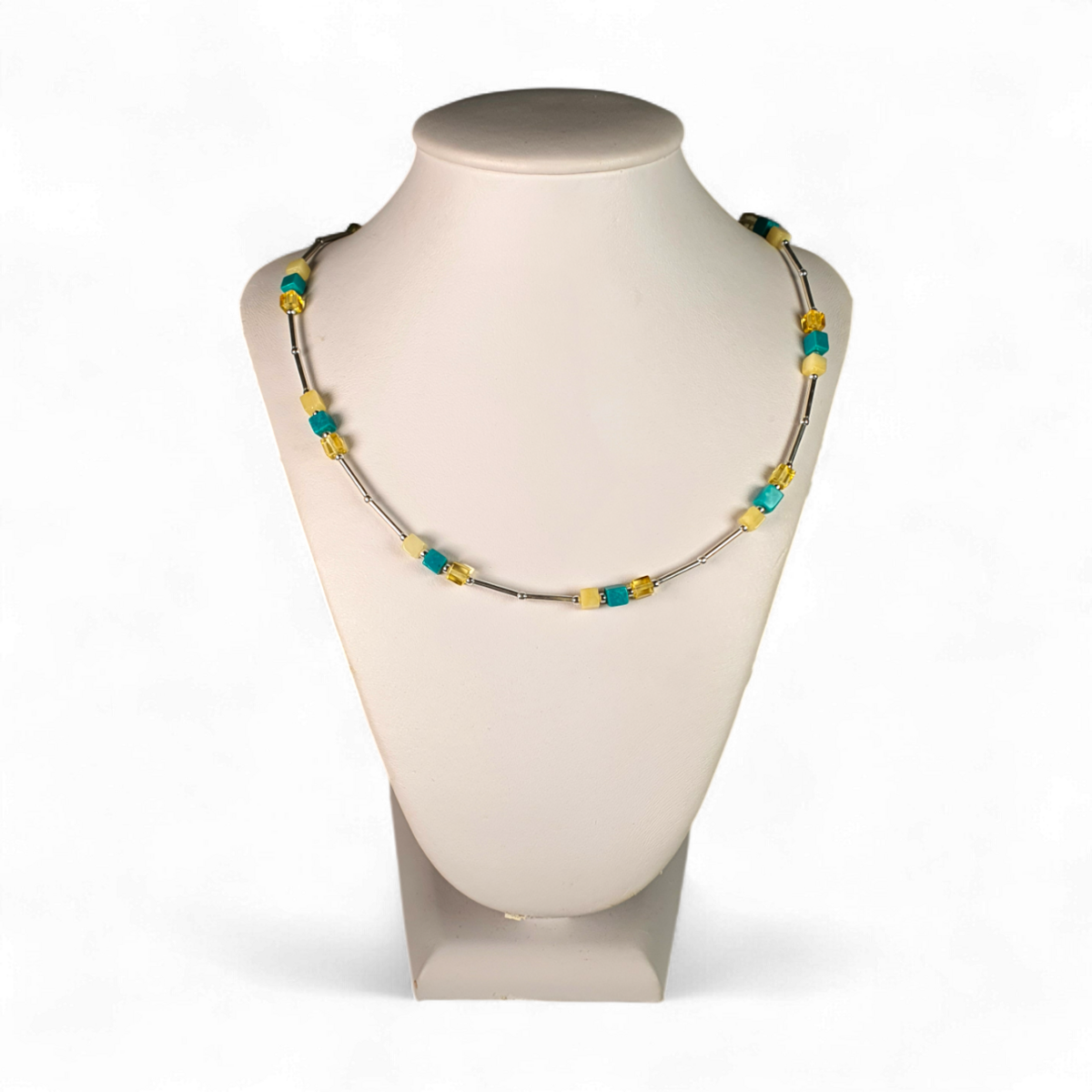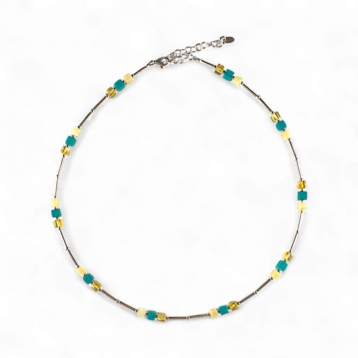 Це елегантне намисто поєднує природну красу справжнього бурштину з вічним блиском акцентів зі стерлінгового срібла. Насичені теплі відтінки бурштину ідеально збалансовані прохолодним блиском срібла, що робить його універсальним виробом, який додає вишуканості як повсякденним, так і офіційним образам. Класичний аксесуар з витонченим акцентом.