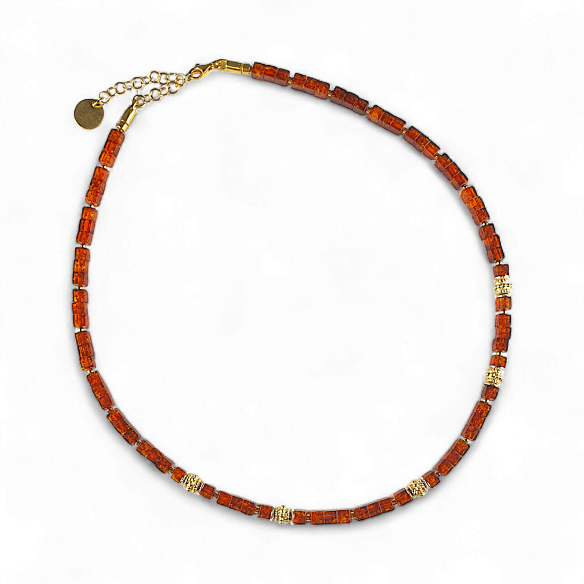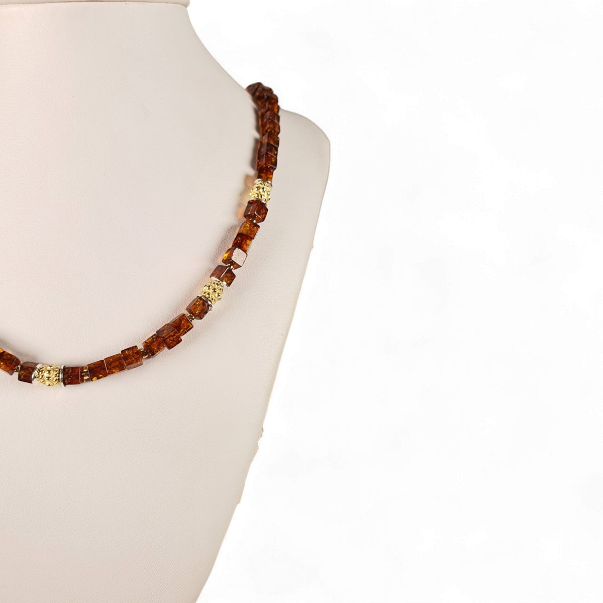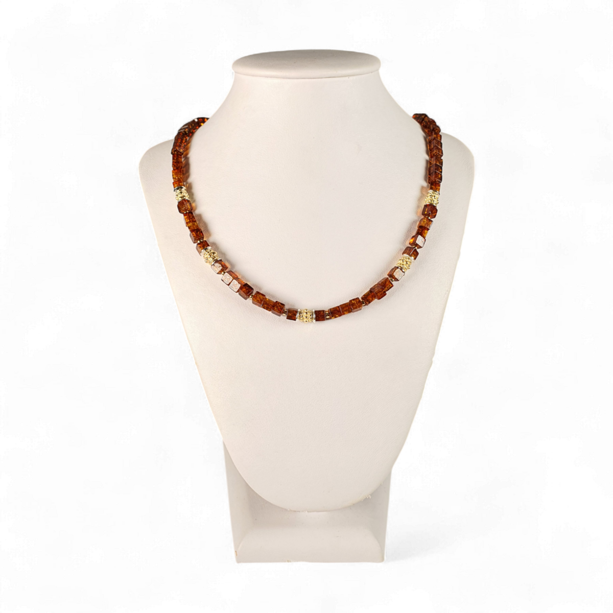 Вишукане поєднання природи та елегантності, це намисто містить справжні бурштинові камені у поєднанні з позолоченими срібними акцентами. Тепле сяйво бурштину гармонійно поєднується з золотими деталями, створюючи вічний аксесуар, який є одночасно вишуканим і універсальним. Ідеально підходить для підкреслення повсякденних образів або додавання розкоші вечірньому вбранню.