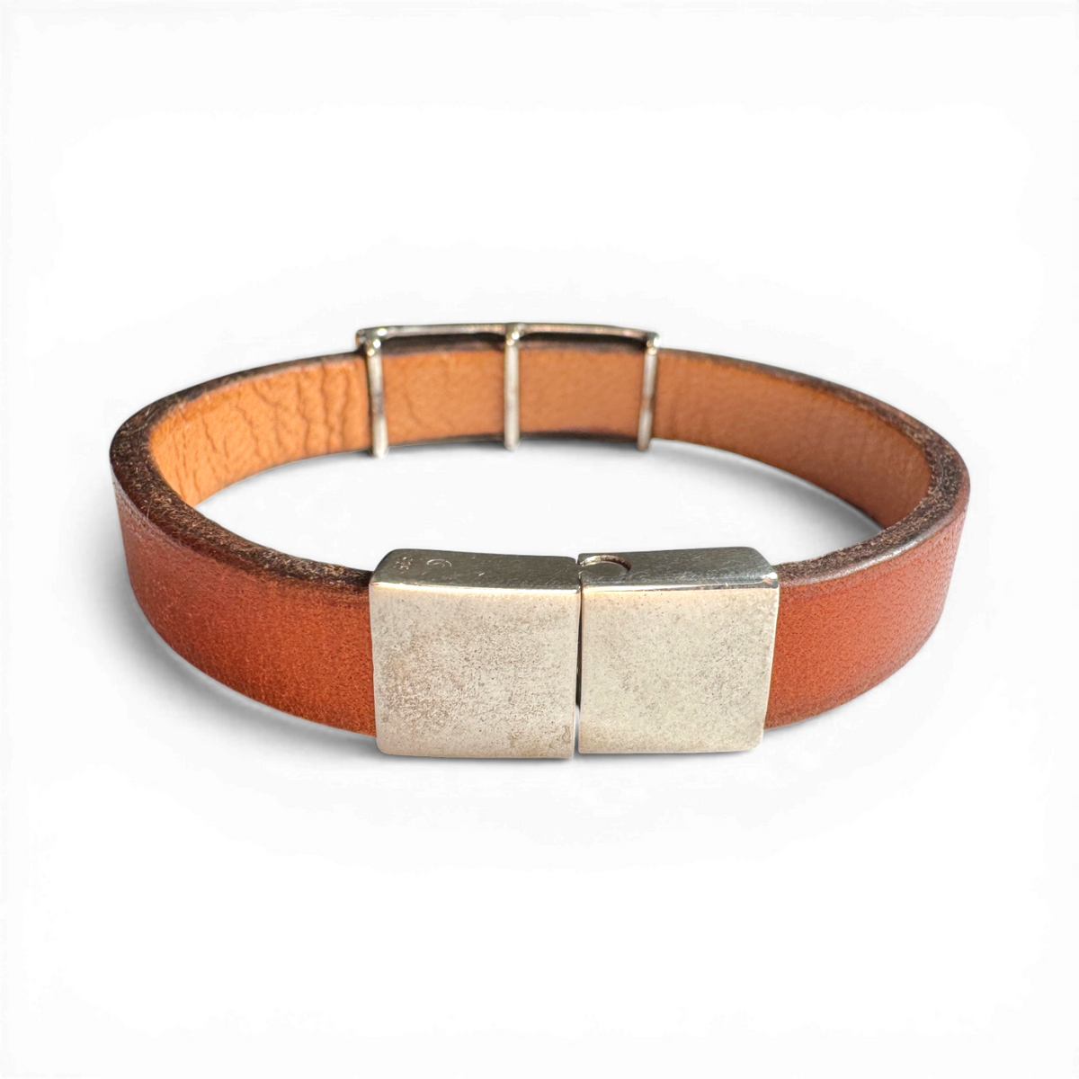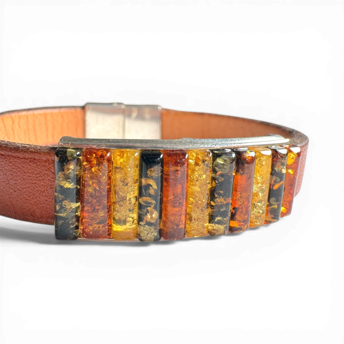Earthy textures, vibrant spirit. This bracelet combines natural leather with colorful amber accents for a relaxed yet refined look. Ideal for everyday wear — layer it or let it shine on its own.