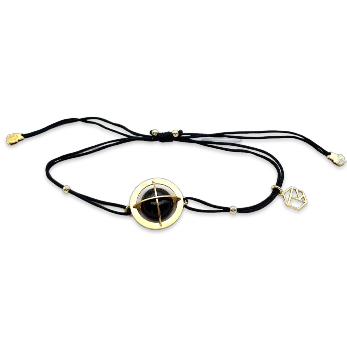 Позолочені деталі 24k на браслеті додають додаткову нотку вишуканості дизайну і гарантують, що браслет буде міцним і довговічним. Чорна мотузка, з якої складається браслет, регульована, тому ви можете носити його на ідеальній довжині для вашого зап’ястя.