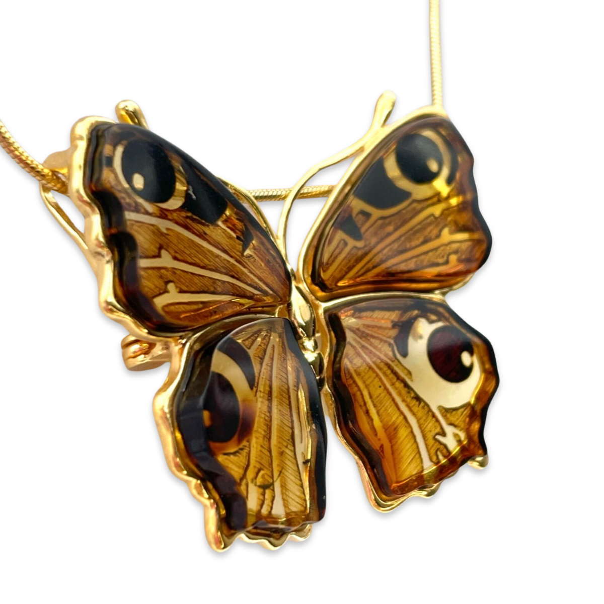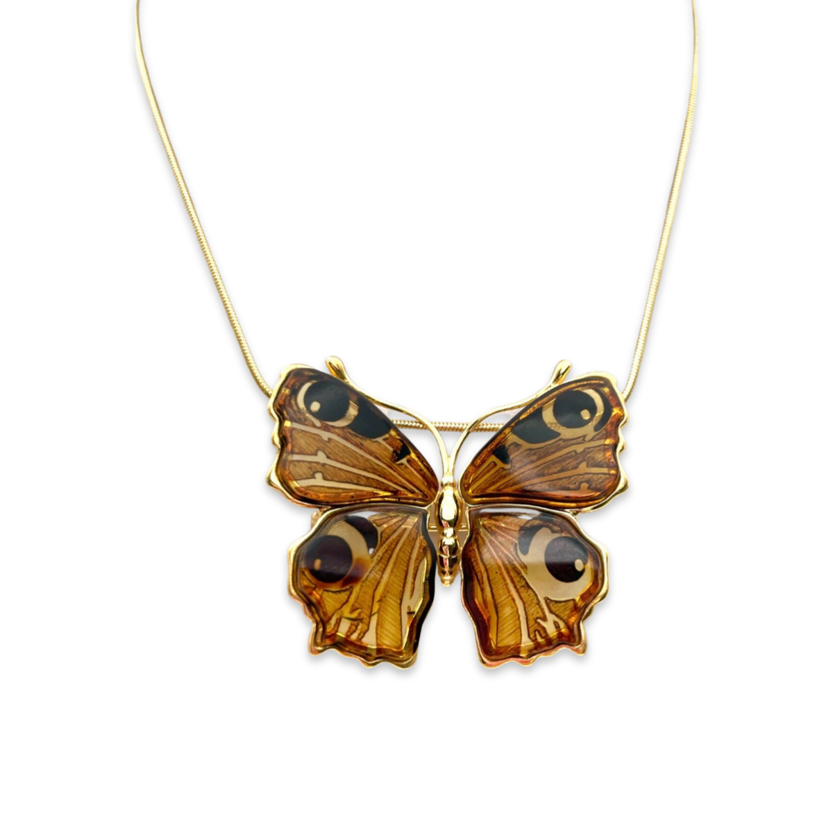 Add a touch of elegance and beauty to your jewelry collection with this stunning gold-plated pendant. The pendant features a unique butterfly design that showcases the natural beauty of the amber stone. The pendant is made of high-quality materials and is designed to last, with a durable gold-plated 24k finish that resists tarnishing and fading. The intricate design of the pendant makes it a perfect statement piece, and it can be worn with both casual and formal outfits. Whether you're treating yourself or looking for a special gift for someone you love, this gold-plated amber butterfly pendant is sure to impress.