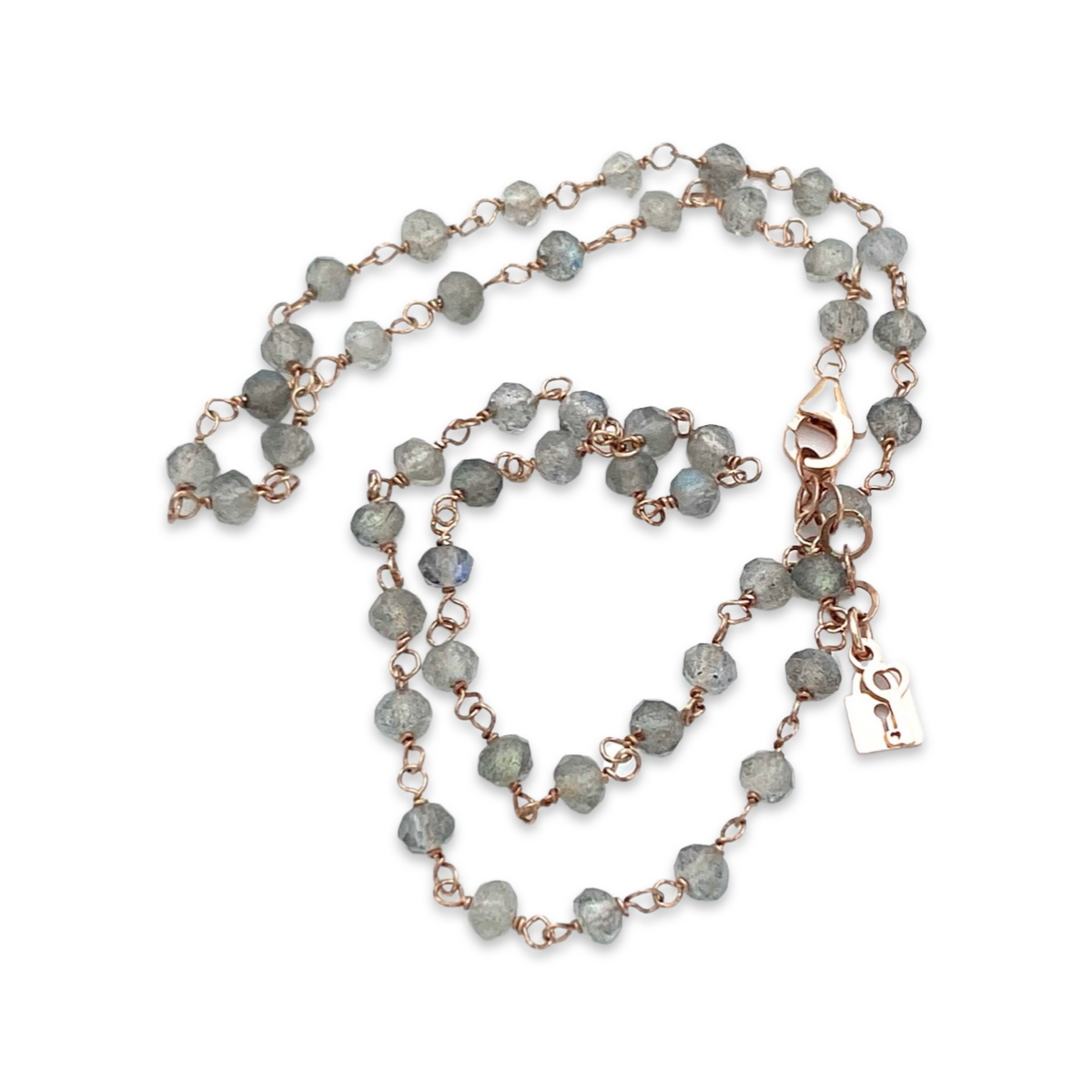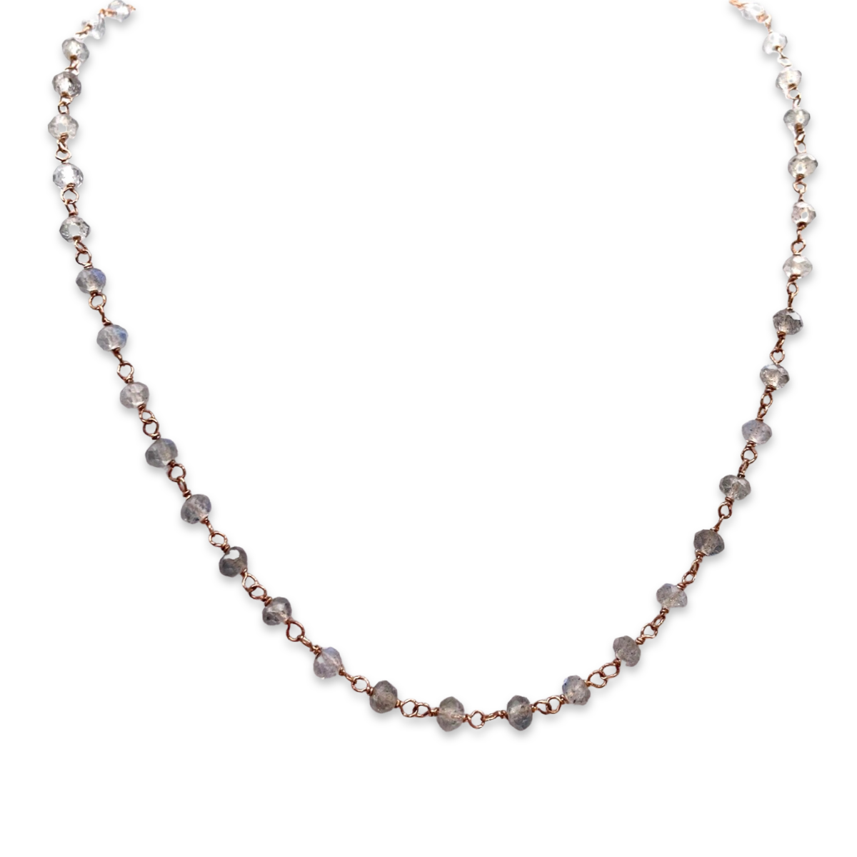 This gold-plated 24k necklace features stunning labradorite stones that are sure to catch the eye. Labradorite is known for its unique iridescence, with flashes of blue, green, and yellow that seem to shimmer and change in the light. The necklace is designed with a delicate chain and features faced labradorite stones. The overall effect is both elegant and modern, making this necklace a versatile addition to any jewelry collection. Whether you're dressing up for a special occasion or just adding a touch of sparkle to your everyday look, this labradorite necklace is sure to impress.