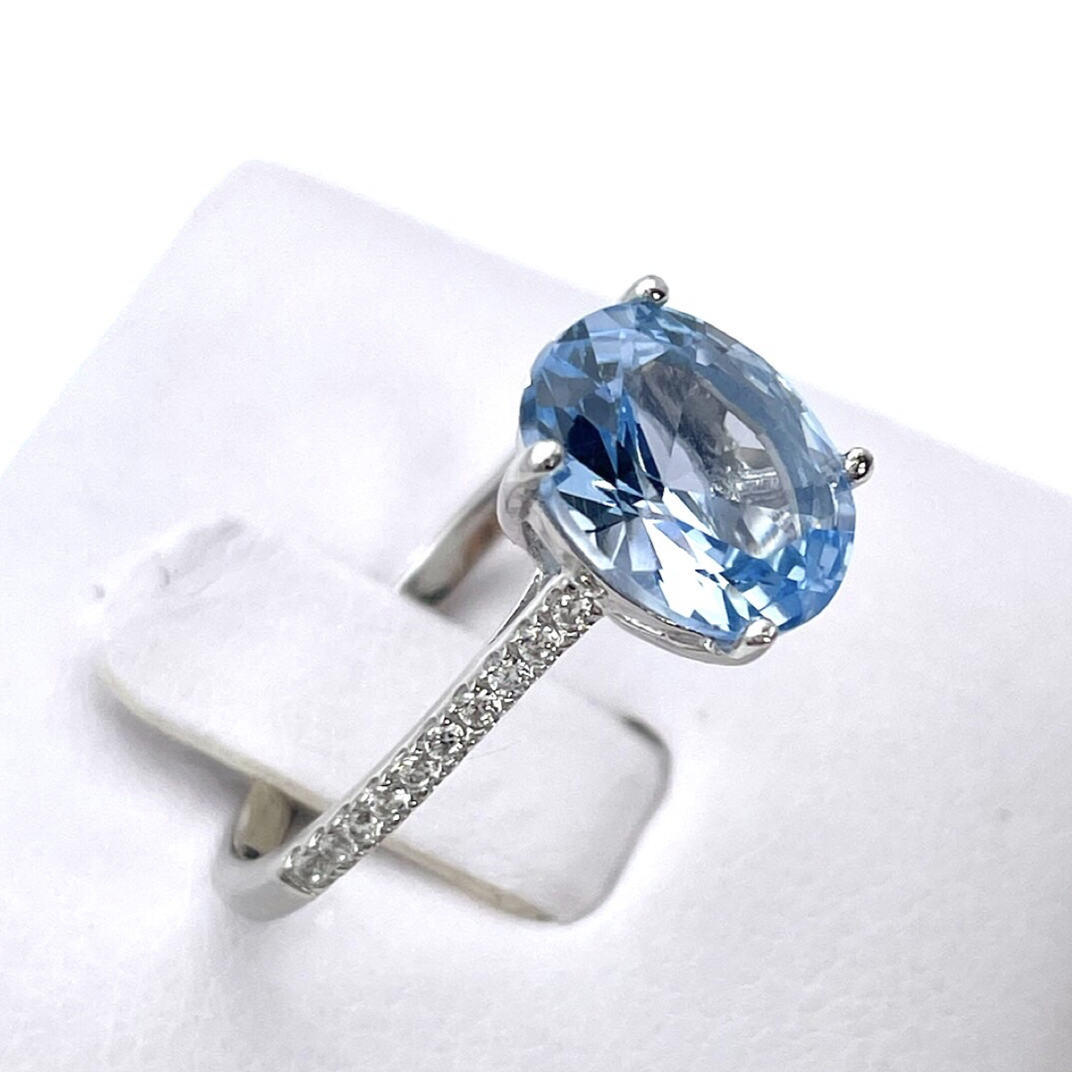 Це кільце є ідеальним втіленням незмінної краси та яскравого акценту кольору. Чи то особлива подія, чи просто бажання додати яскравості до вашого щоденного образу, срібне кільце з овальним огранюванням і синім кристалом стане ідеальним вибором.
