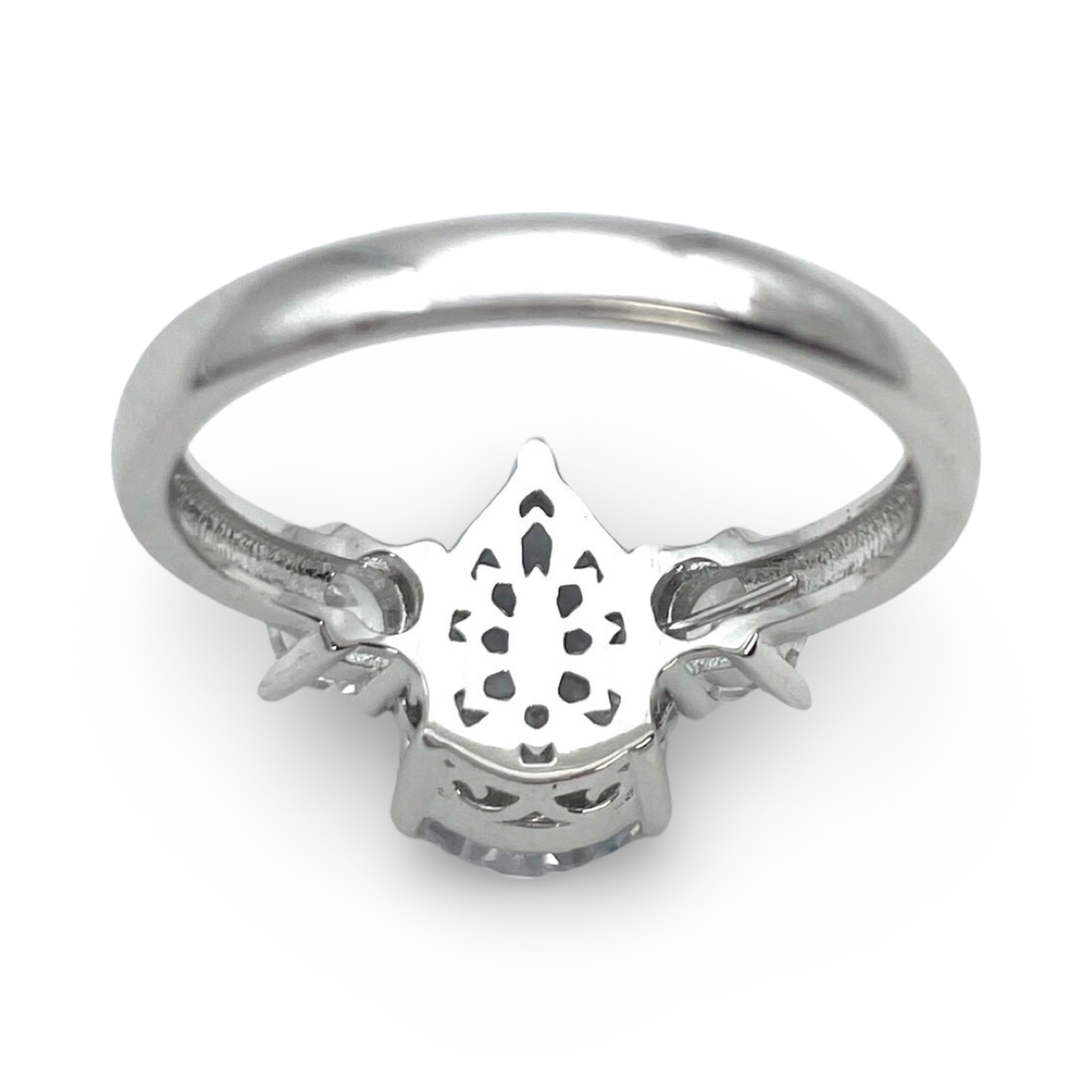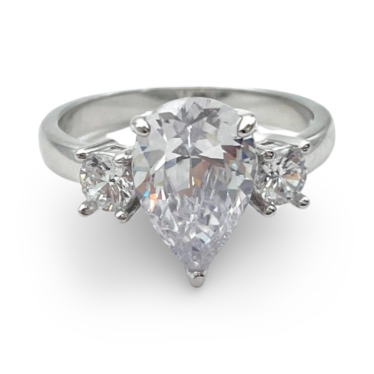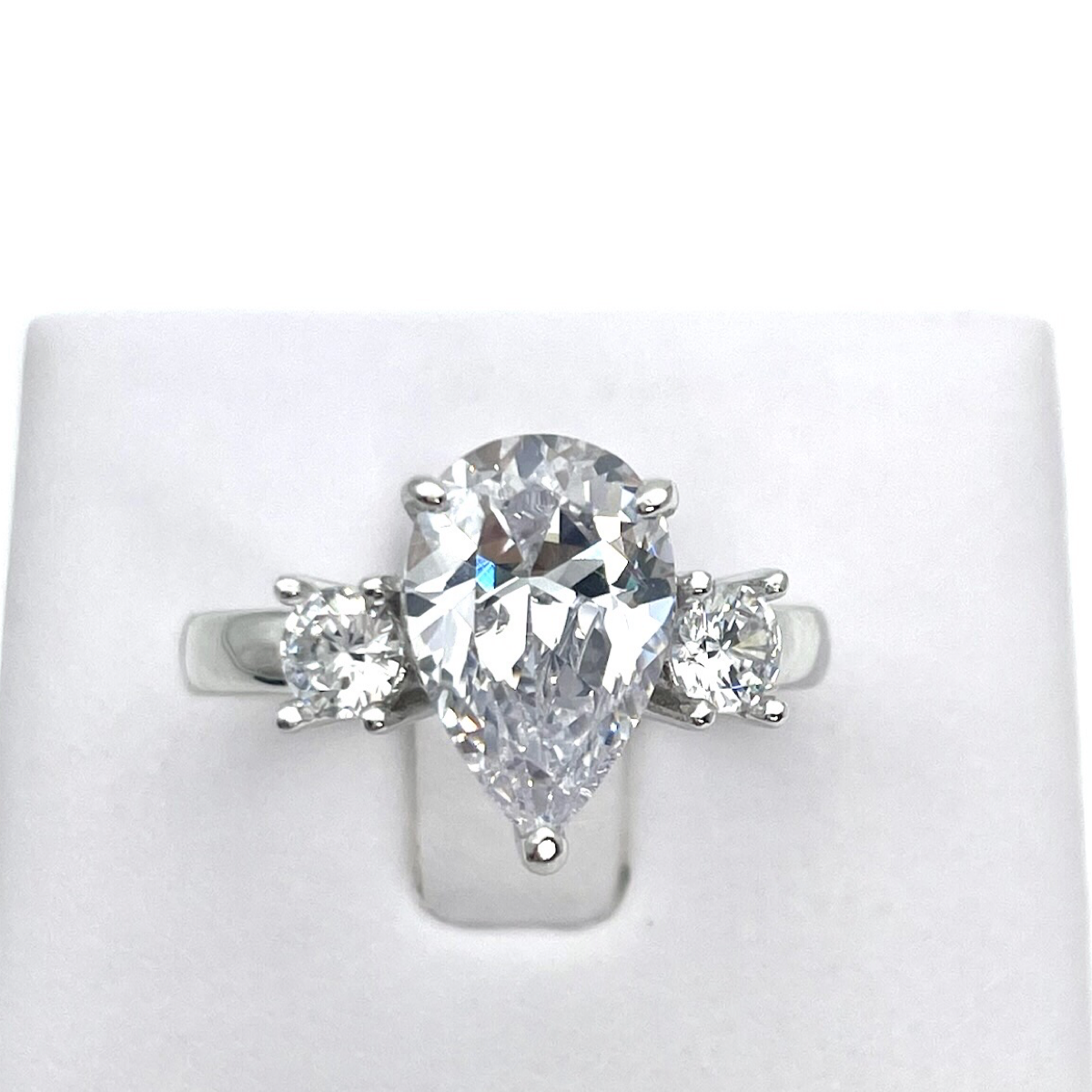 Ця вишукана каблучка демонструє блискучий білий циркон із огранюванням у формі груші як центральний елемент. Огранювання у формі груші, з його округлим кінцем і загостреним вістрям, відоме своєю витонченою та краплеподібною формою, створюючи атмосферу вишуканості та романтики.