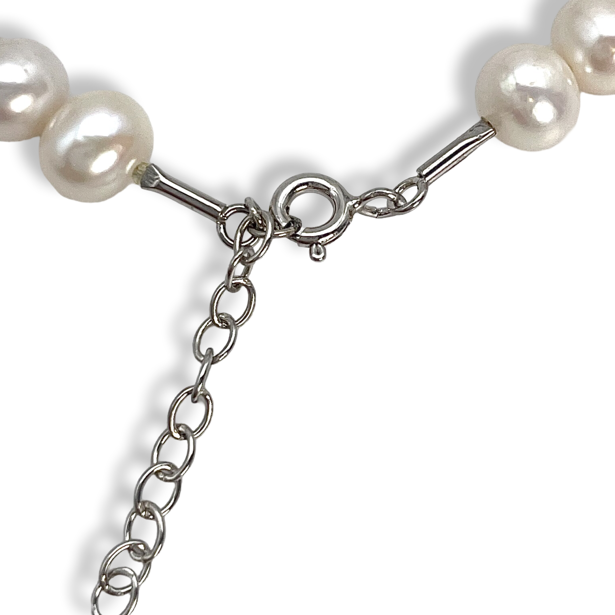 Доповнюють перлини делікатні деталі з 925 срібла, ретельно виготовлені для підкреслення загальної привабливості браслета. Ці срібні акценти додають нотку вишуканості та елегантності дизайну, піднімаючи його на новий рівень витонченості.