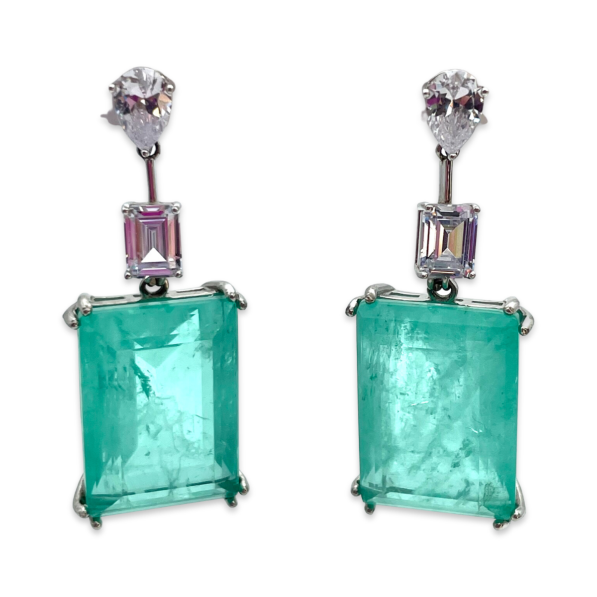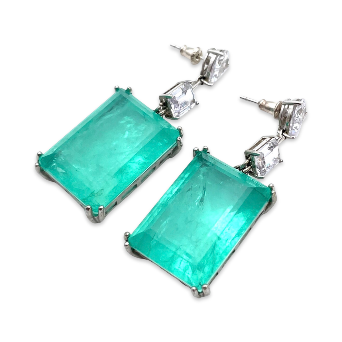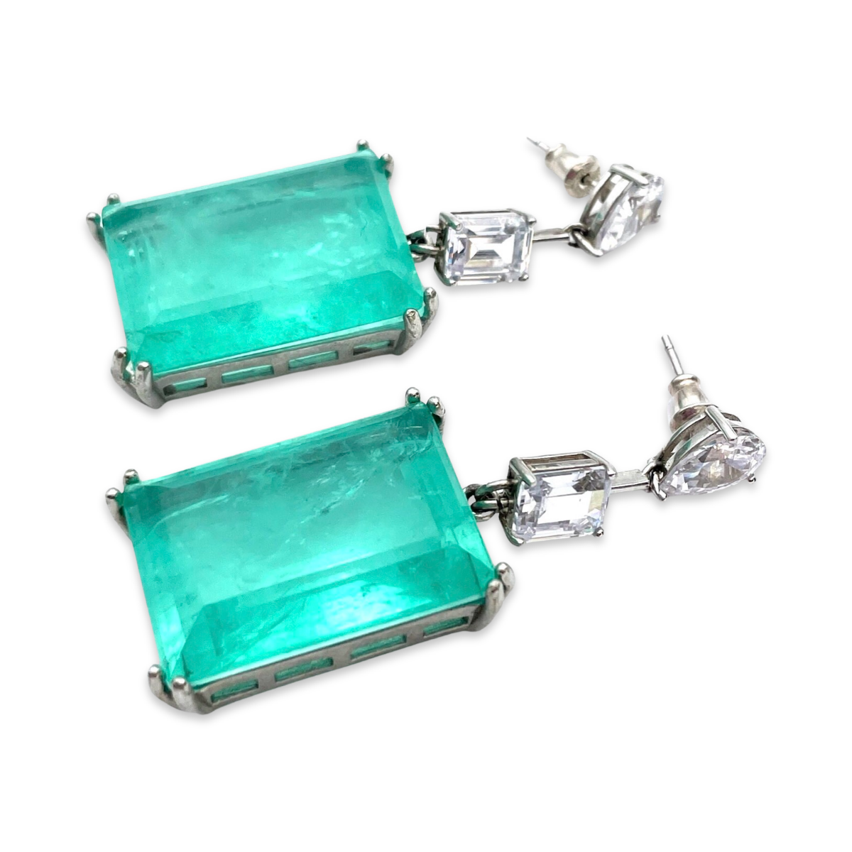 These stunning silver stud earrings feature a beautiful Paraiba stone and sparkling zircons. The earrings are made from high-quality sterling silver 925, which gives them a shiny and durable finish. The Paraiba stone is a rare and unique gemstone, known for its vivid blue-green color. The stone is added by a shimmering zircons, which add an extra touch of sparkle and shine to the earrings. These earrings are perfect for adding a pop of color and elegance to any outfit, whether you're dressing up for a special occasion or adding a touch of glamour to your everyday look. They come with secure backings to ensure they stay comfortably in place throughout the day.