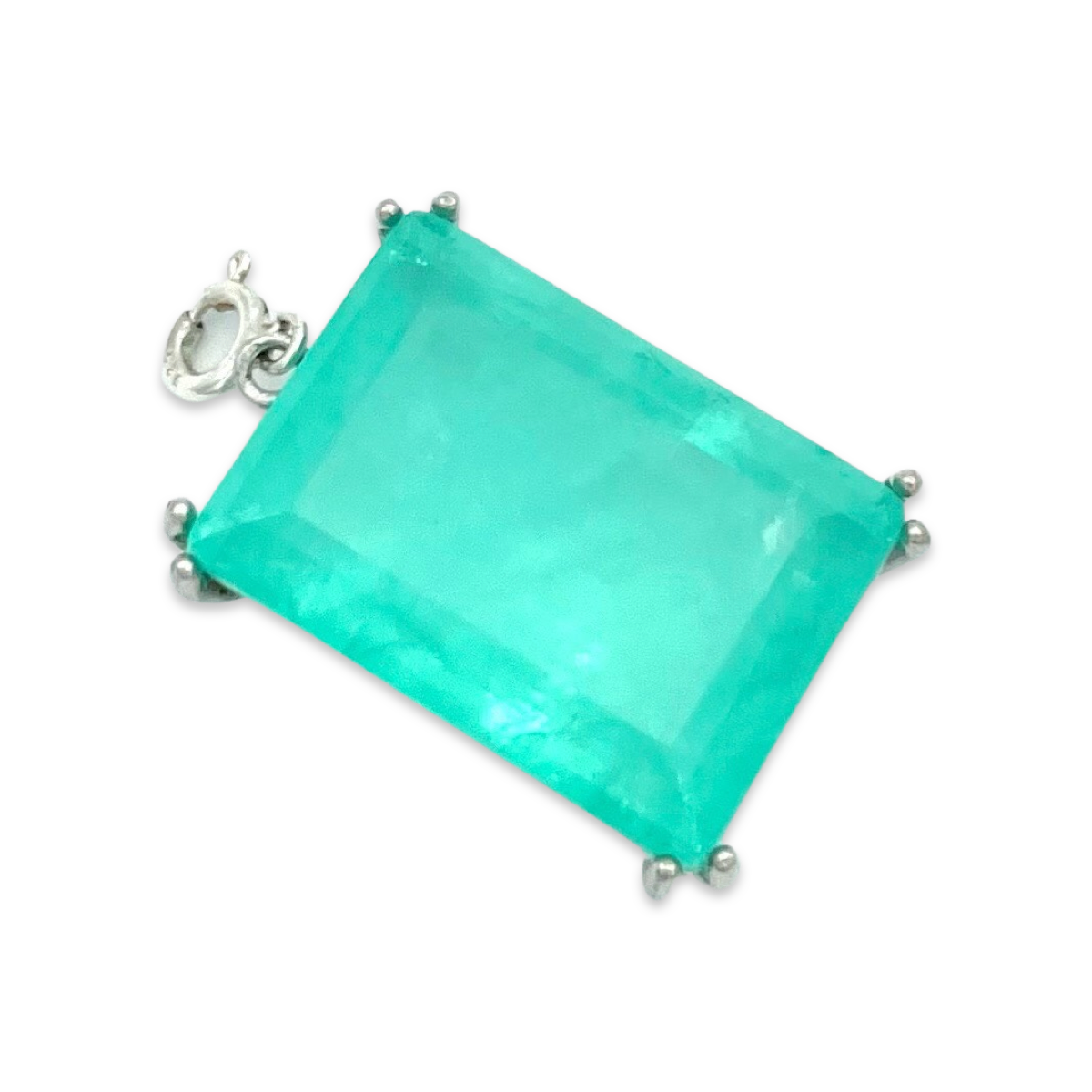 The Silver Pendant Paraiba is a stunning and elegant piece of jewelry that is perfect for adding a touch of sophistication to any outfit. This pendant features a high-quality Paraiba stone, set in a silver setting 925. The simple design of the setting enhances the beauty of the stone, making it an eye-catching accessory that is sure to turn heads. If you're looking for a unique and beautiful piece of jewelry, the Silver Pendant Paraiba is a great choice.