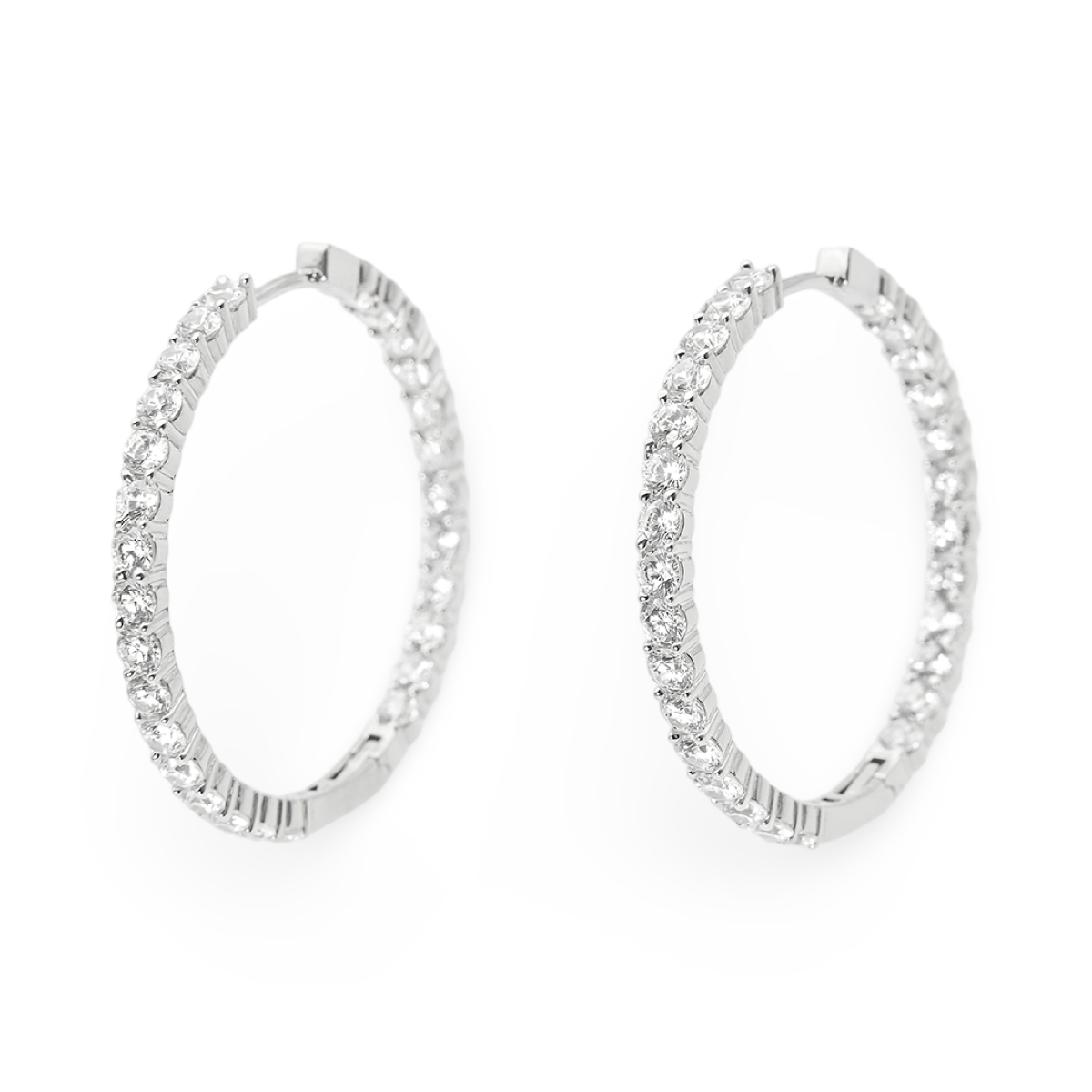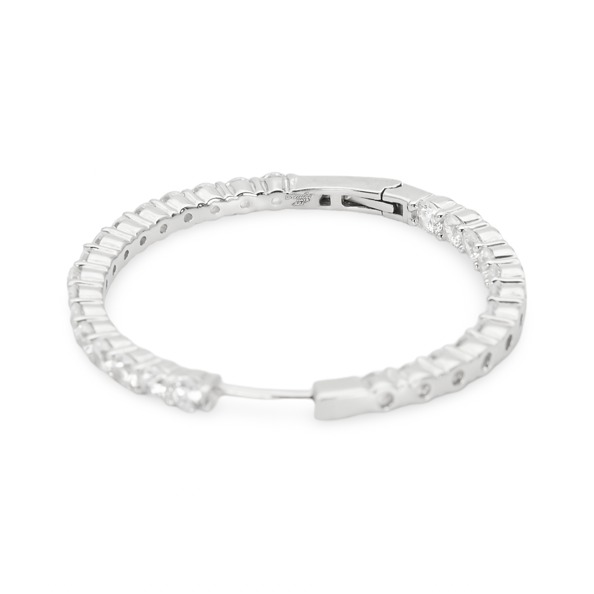Срібні каблучкаві сережки з цирконами