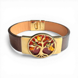 Brown Leather Bracelet with Tree of Life Amber Centerpiece